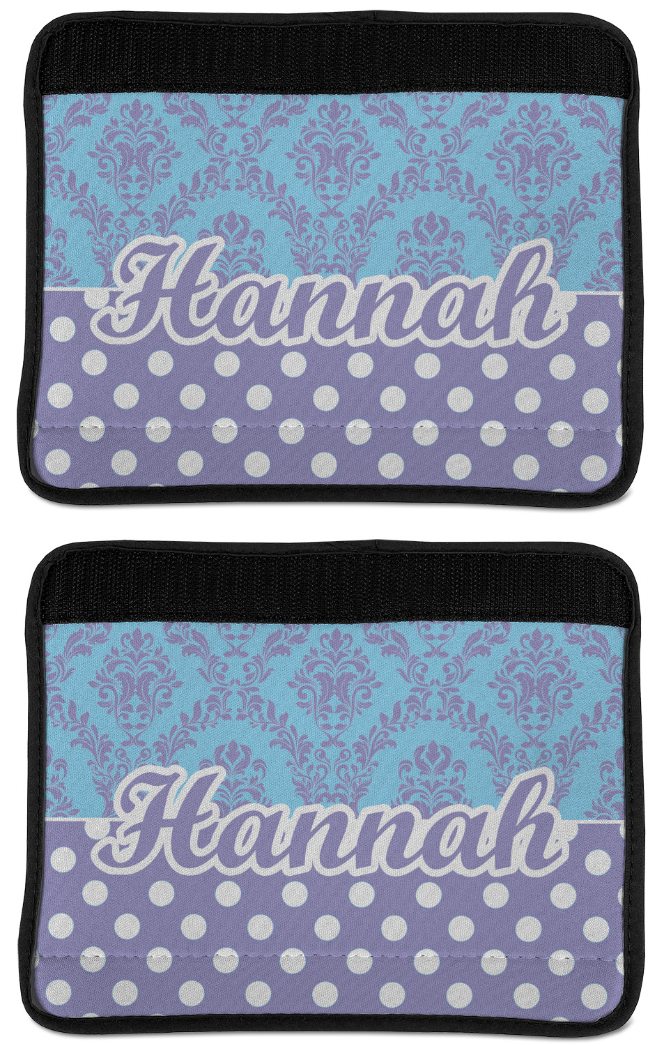 Made from neoprene, our seat belt strap covers wrap around the belt itself and have a Velcro tab for easy attachment and closure. The belt's edges are trimmed with a black polyester for a secure finish. Each cover is 9.5 by 7 inches when open and 9.5 by 2.5 inches when closed. We print your personalized design on the face of the seat belt pad.