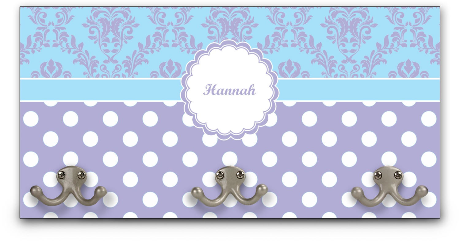 This coat rack is the perfect way to add some personality to your wall or entryway. The board is made of a strong maple that is approximately 16" x 8". The three 2-prong hooks are a sturdy metal that have three screws attaching them to the board. Your design is printed right onto the front of the board while the back and sides are a simple black.