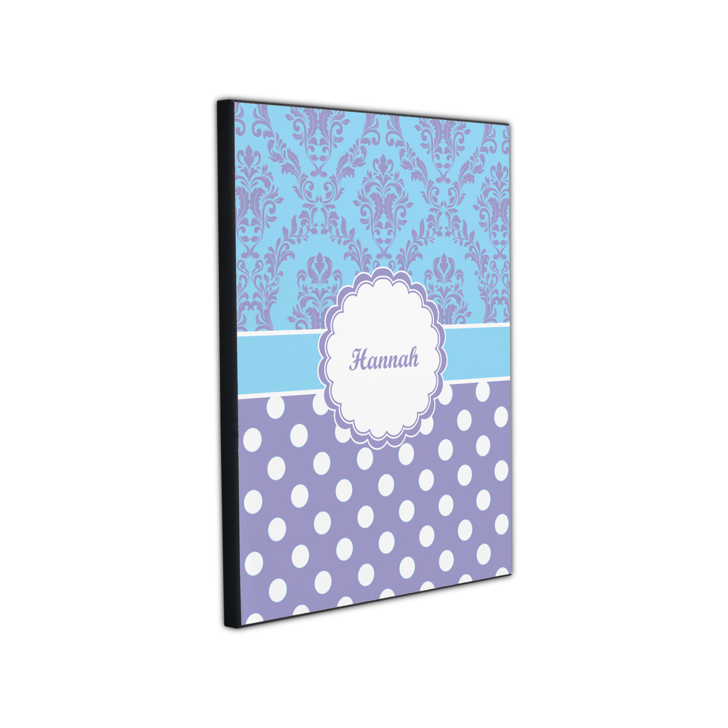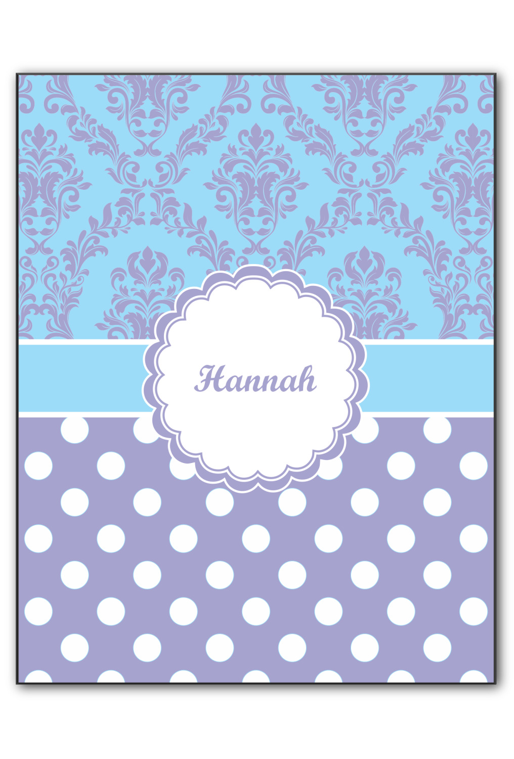 Here is a wonderful damask design with a fun, modern twist. The top of this design features a blue and purple elegant damask. The bottom features a classic design of purple with white polka dots. The two make an adorable combination. The design is completely re-color-able - so you can change any of of the colors and choose from the many many colors in our customization system.