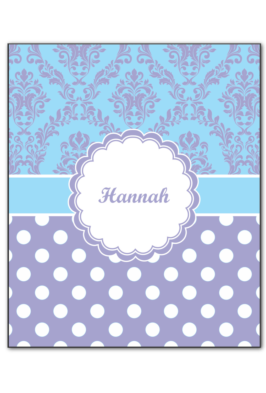 Here is a wonderful damask design with a fun, modern twist. The top of this design features a blue and purple elegant damask. The bottom features a classic design of purple with white polka dots. The two make an adorable combination. The design is completely re-color-able - so you can change any of of the colors and choose from the many many colors in our customization system.