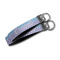 These key fob keychains are made from a polyester weave, right here in the USA. They feature a silver, metal clasp, attached to a round keyring. The piece gives the personalized wristlet a beautiful, finished look. Your customized design is printed on the outside of the keychain strap. We carry these wristlets in two sizes: small, which is 5 inches in width, and large, which is 5.5 inches in width.