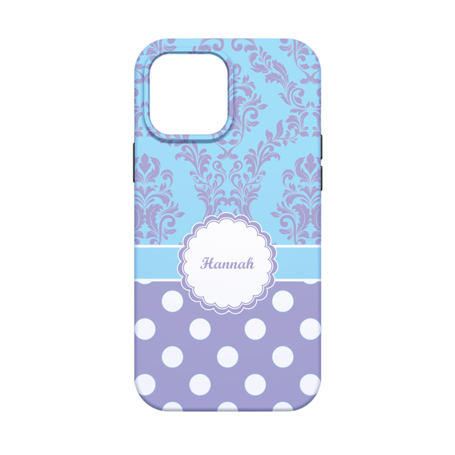 Here is a wonderful damask design with a fun, modern twist. The top of this design features a blue and purple elegant damask. The bottom features a classic design of purple with white polka dots. The two make an adorable combination. The design is completely re-color-able - so you can change any of of the colors and choose from the many many colors in our customization system.