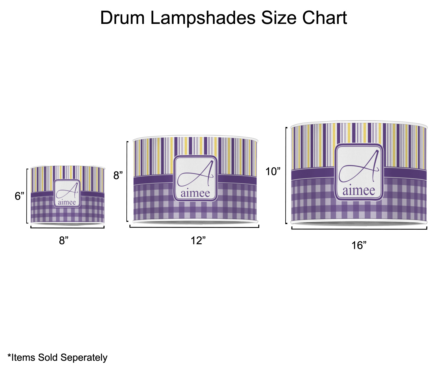 Our customized lamp shades also come in 3 different sizes: 8", 12" and 16", measuring at 8" in diameter by 6" tall, 12" in diameter by 8" tall, and 16" in diameter by 10" tall, respectively.