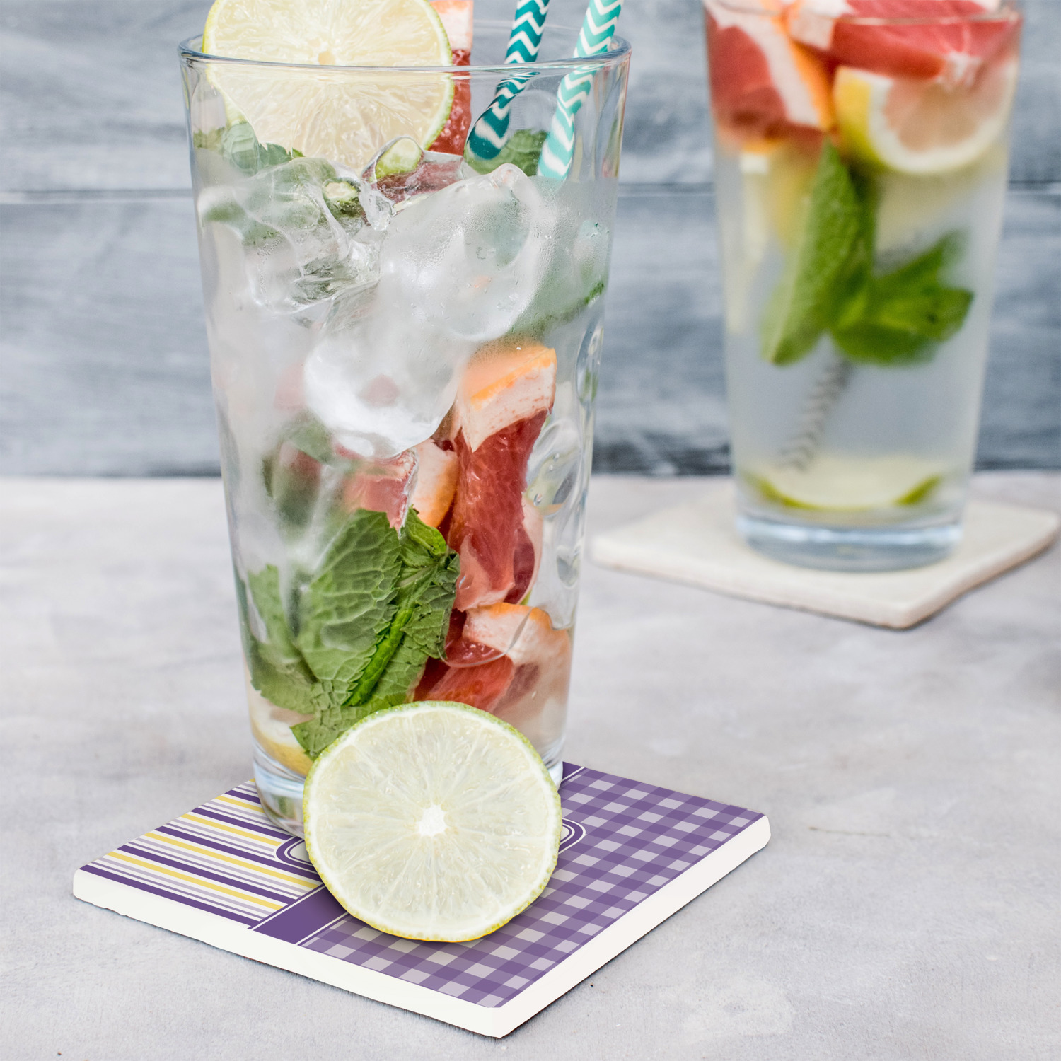 Our super absorbent stone coasters absorb the condensation into the coaster, before it has a chance to flow on to your furniture or table tops, thus preventing watermarks and blemishes.