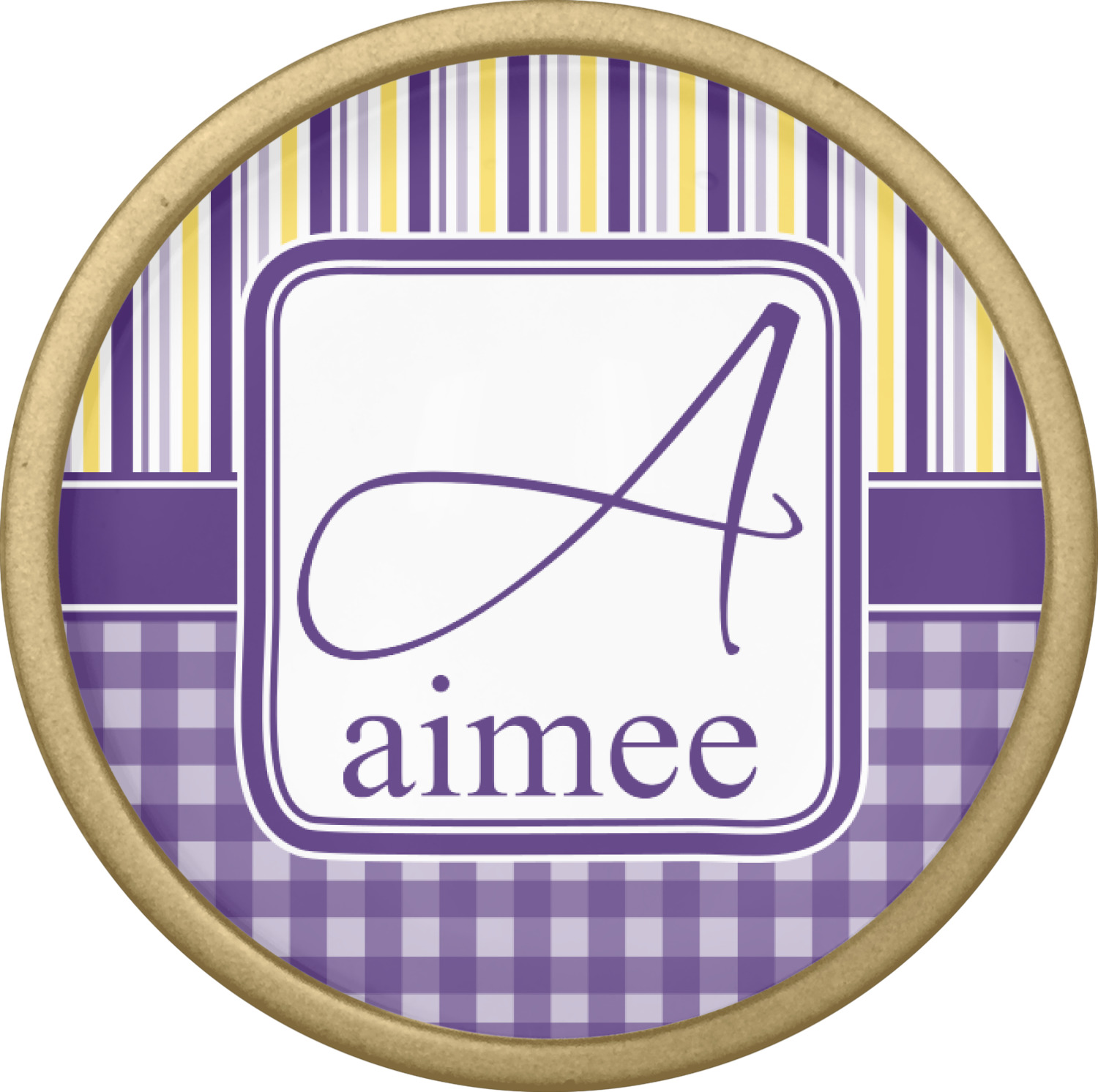 To tie both patterns together a purple band has been added to spotlight the personalization of the customer's choosing.