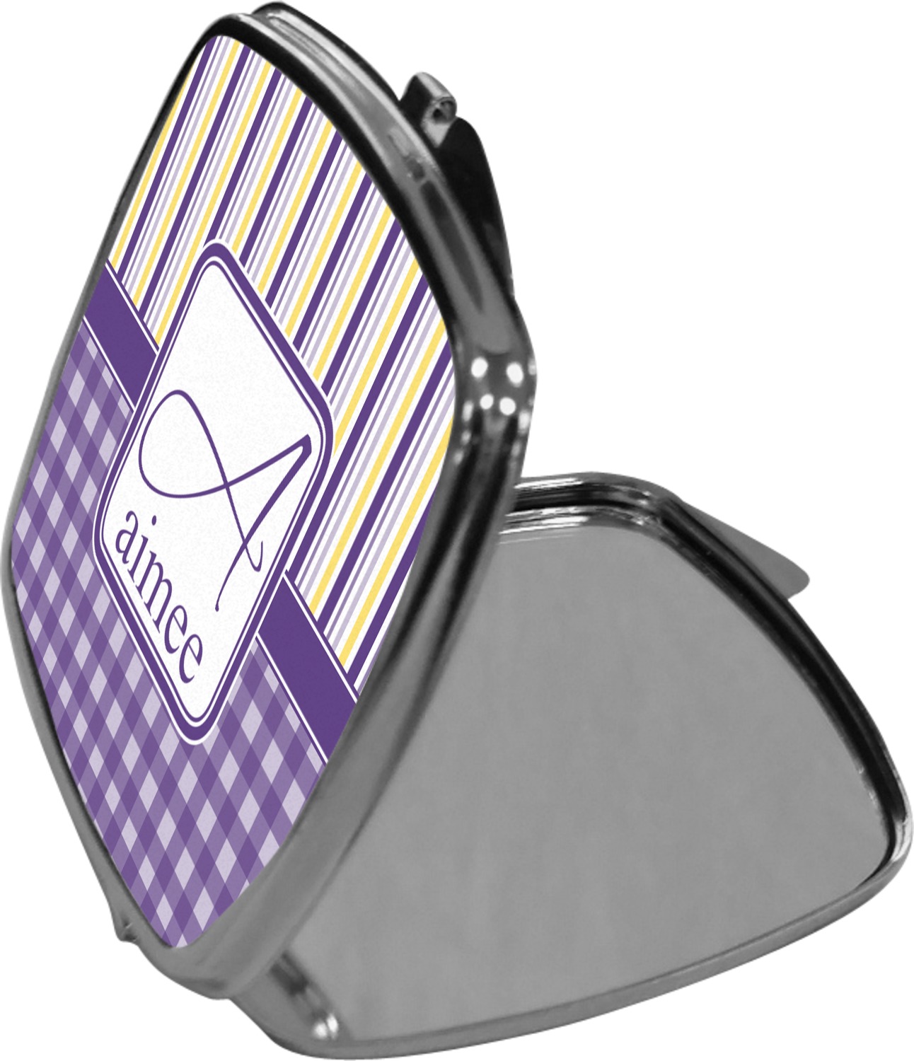 We offer many prints and patterns and many of our patterns are available in 45 different colors. You can personalized the compact mirrors with a name, a monogram or just an initial. We offer several different label, ribbon and font choices. Our customization system lets you create your very own custom & unique product and it lets you preview it before you purchase.