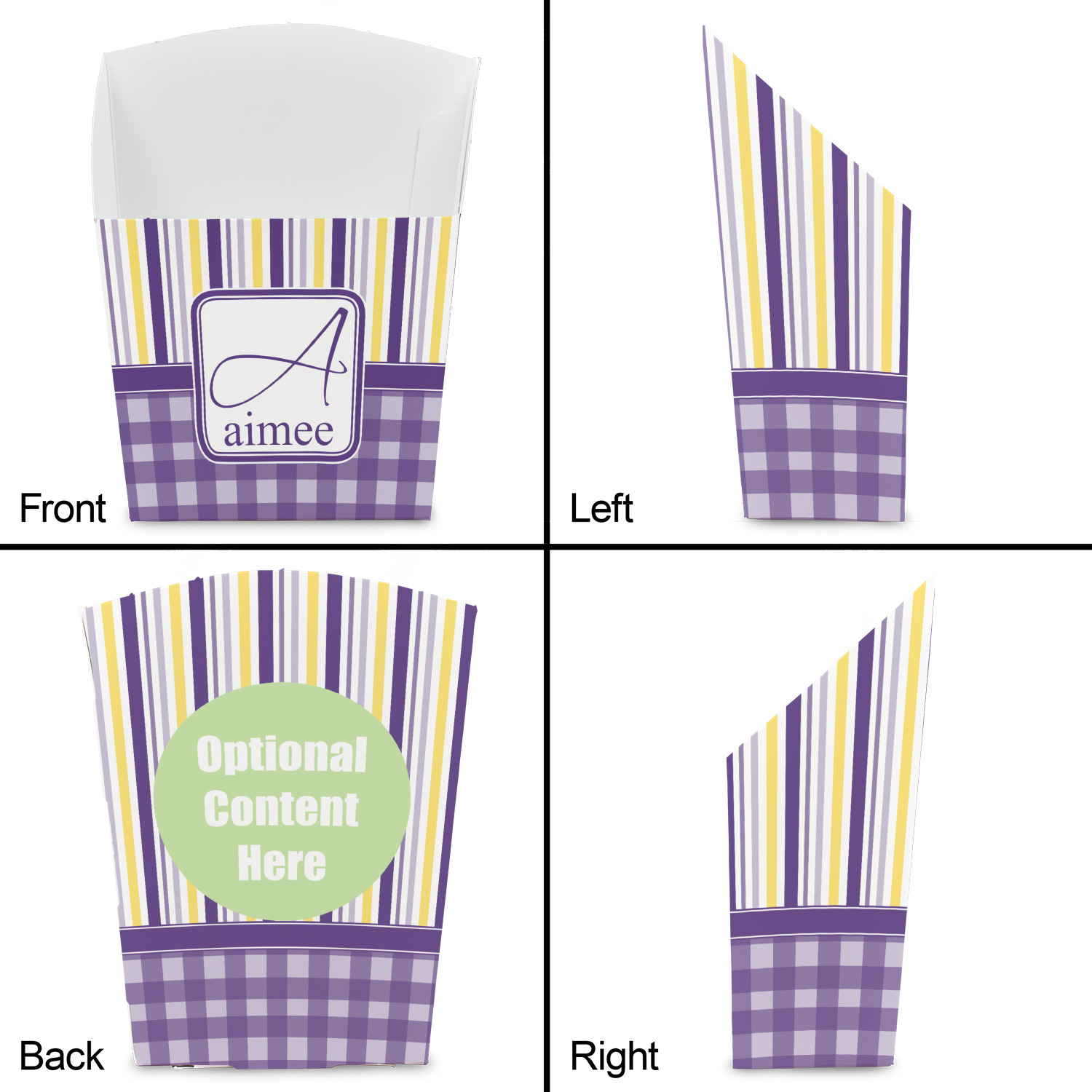 These favor boxes are printed in full color on quality cardstock - so coordinating the french fry favor boxes to match your event's themes or colors should be a breeze. You can upload your own design including artwork, logos or photos
