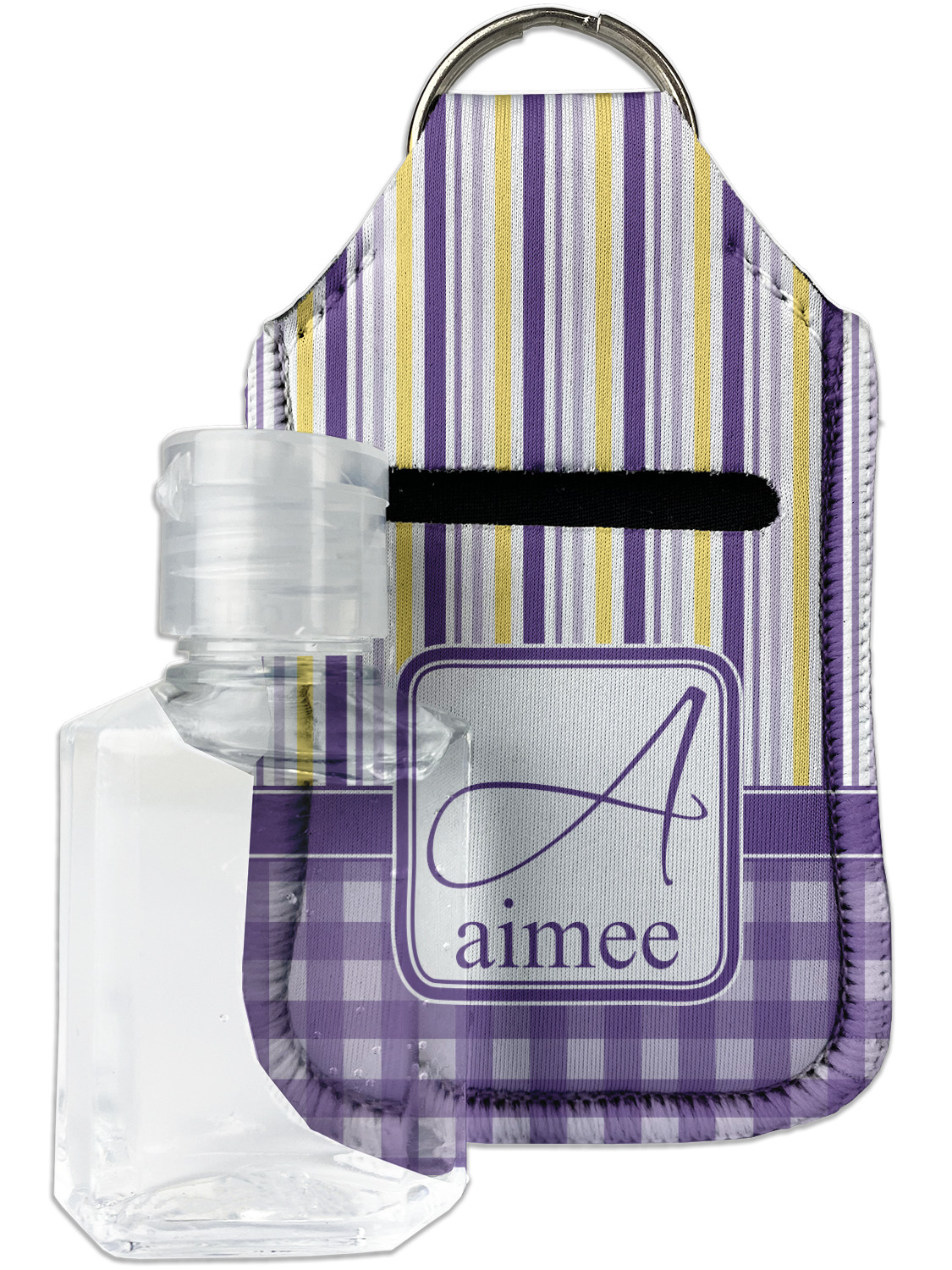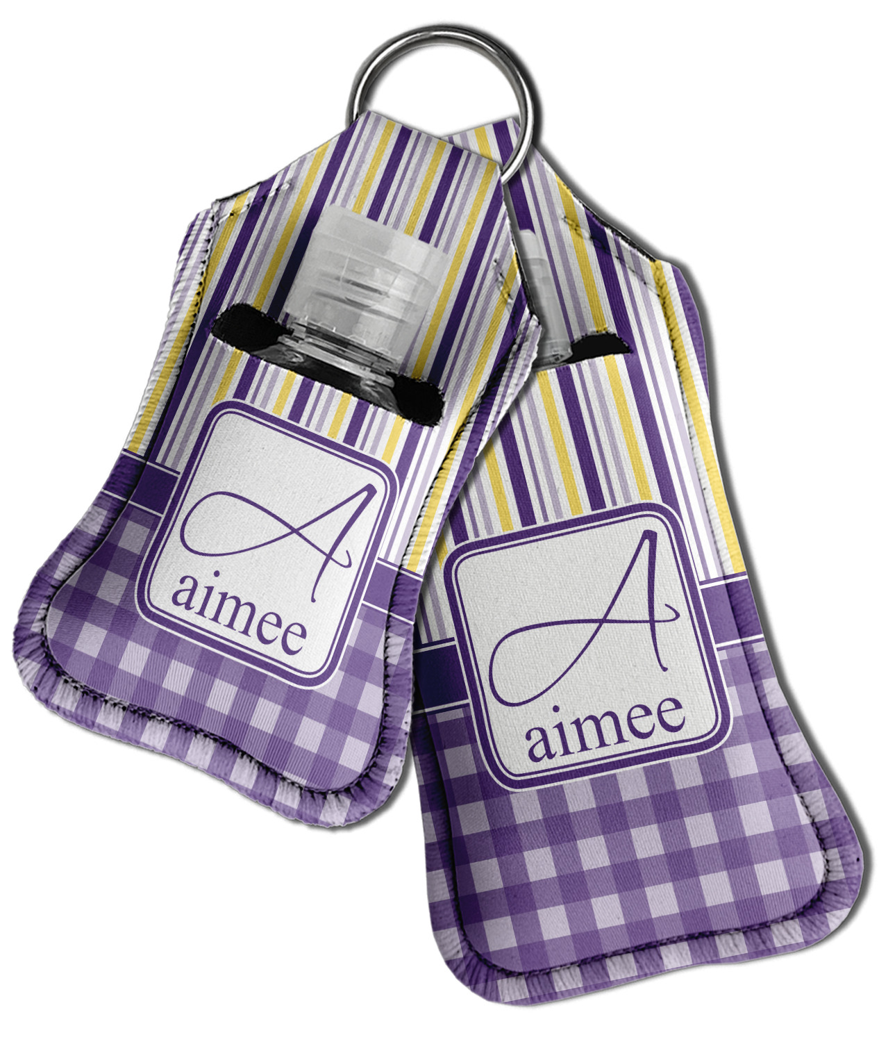 Each hand sanitizer holder comes with its own empty travel-sized, refillable hand sanitizer sure to fit snug in your customized sanitizer case! Our hand sanitizer cases are a durable, yet soft neoprene material sure to last any daily activities or travel agenda. Customize and personalize a hand sanitizer bottle holder with one of our two sizes - small (4.25" x 2.25") or large (5.5" x 2.5"). Each travel sanitizer holder comes with a keyring for attachment on bags, keys, or more!