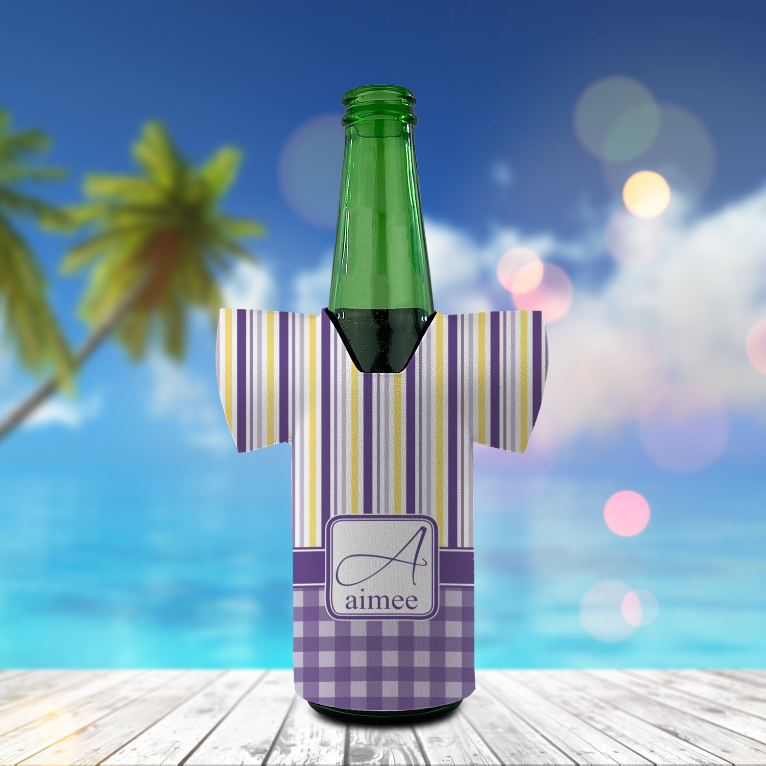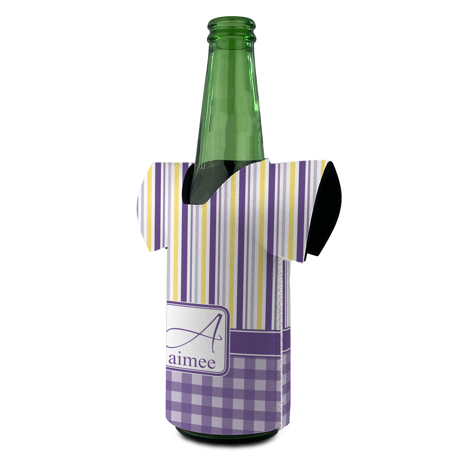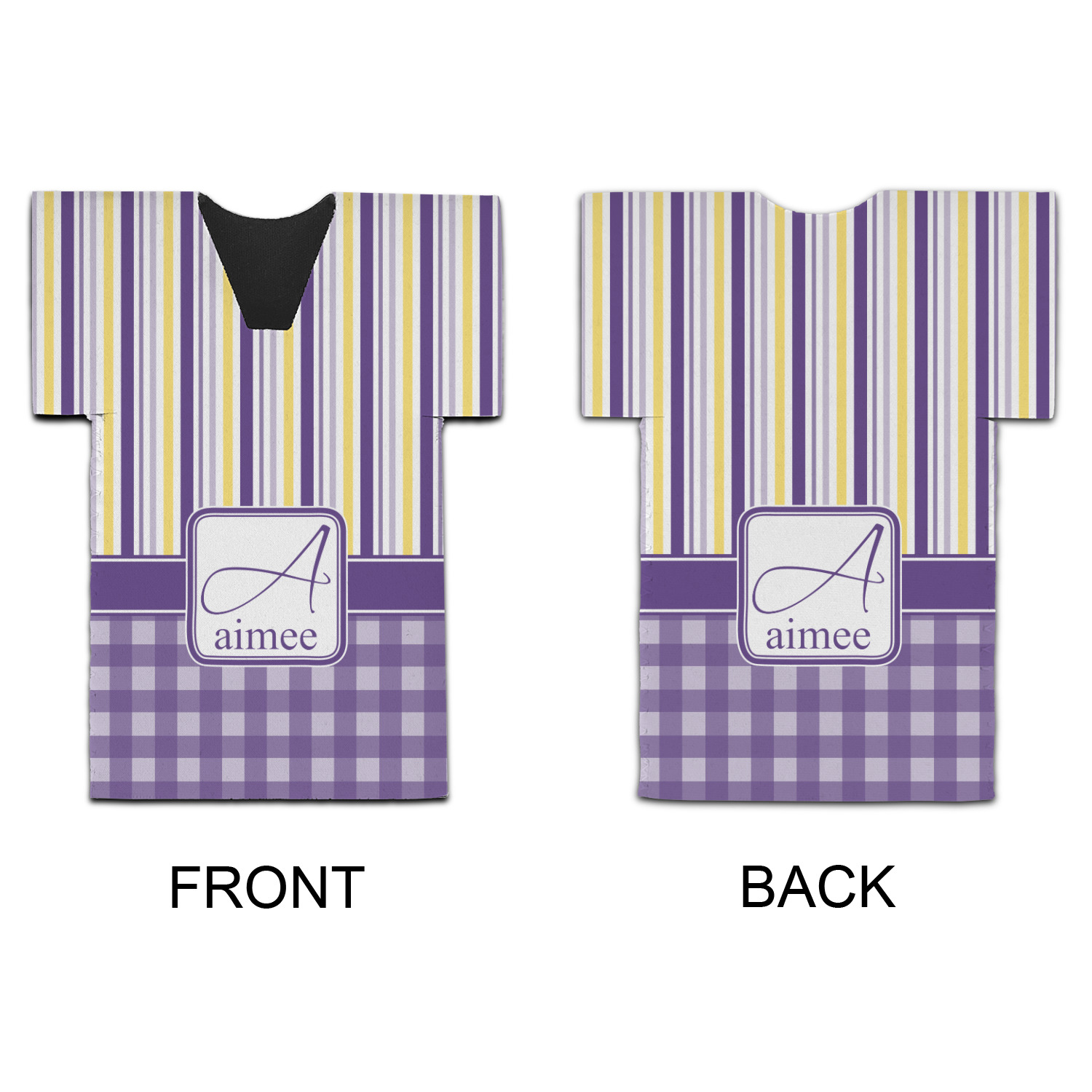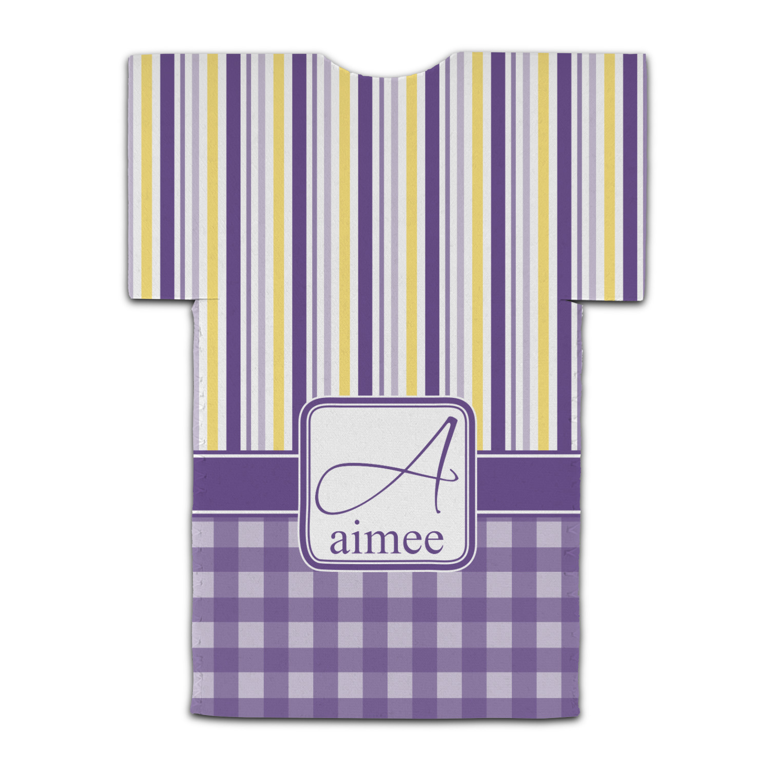 To tie both patterns together a purple band has been added to spotlight the personalization of the customer's choosing.