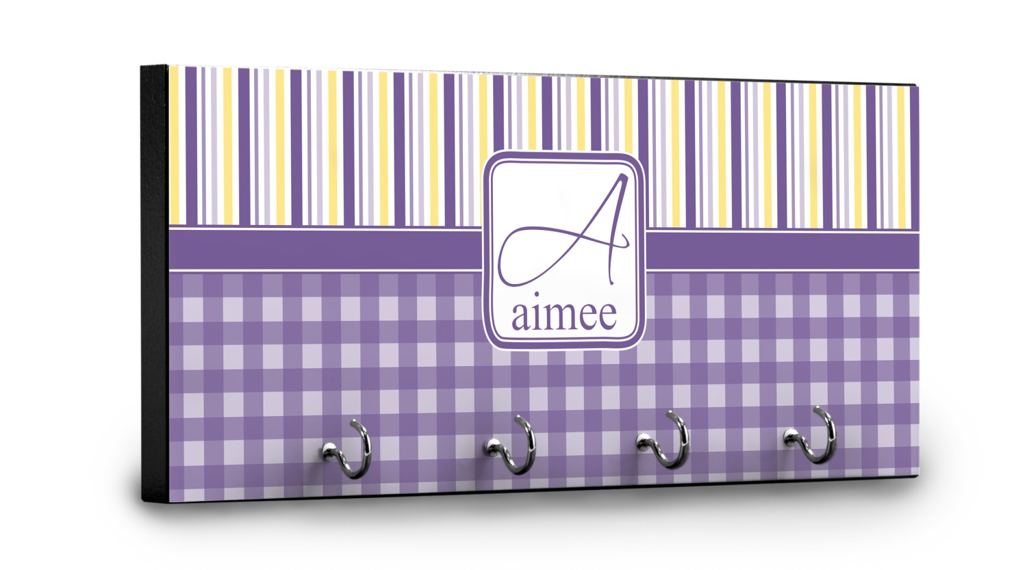 This 11" x 5" key hanger is made of sturdy wood and has four metal hooks lining the bottom. This is the perfect size for a family with several drivers. Not only can you hang keys on it though, but pet leashes and other small items. The board is black on the sides and back and is printed with the design of your choice on the front.