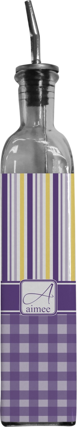Made from recycled glass in Spain, these oil bottles have a classic, delicate look, and are accompanied by a metal spout for controlled pouring. Each bottle holds approximately 13 ounces and measures at 12 by 2 inches. We customize your glass oil bottle by applying your personalized design on the front and sides, using an adhesive. Our customizable stickers are made from high quality, gloss vinyl and are printed with waterproof, eco-solvent inks. These pieces are machine cut for accuracy and symmetry. The result is a robust, waterproof, adhesive decal that will not fade or deteriorate with time.