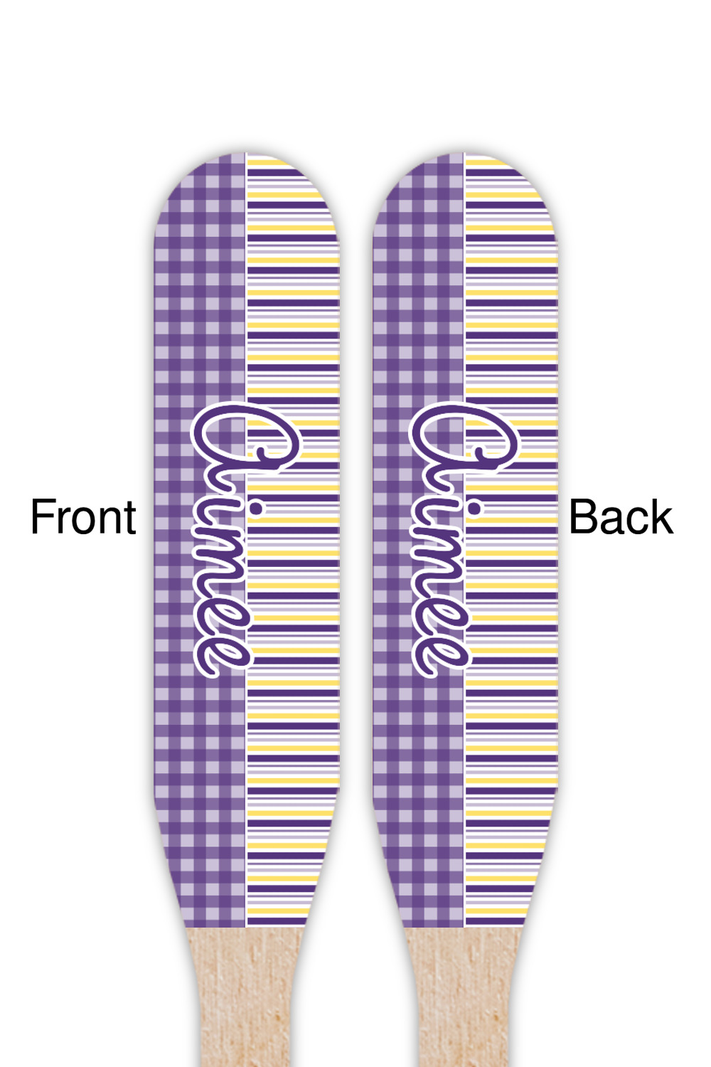 To tie both patterns together a purple band has been added to spotlight the personalization of the customer's choosing.