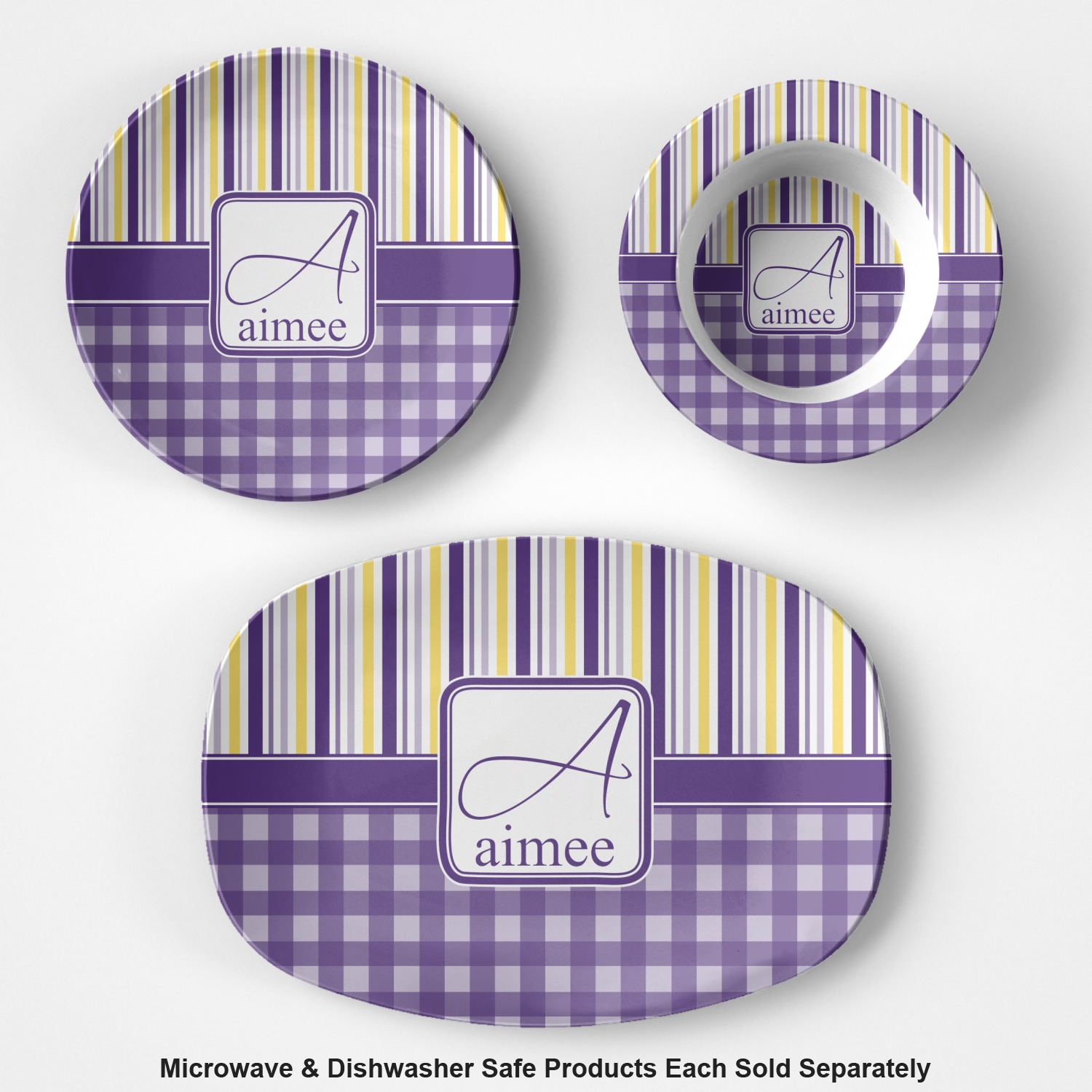 Made from a composite, thermo-set, polymer plastic, these dinner bowls have the versatility, durability, and weight of a melamine bowl without any of the downsides of melamine. Unlike melamine dinnerware, these bowls can withstand high heat. These custom plastic bowls can even handle temperatures of up to 250 degrees Fahrenheit, for up to 60 minutes. The pieces of our plastic dinner set are never made with harmful chemicals, such as BPAs, formaldehyde, DEHPs. We display your personalization on the base of this bowl's interior, while the bowl itself has an 8.75" diameter and is 1.75" tall.