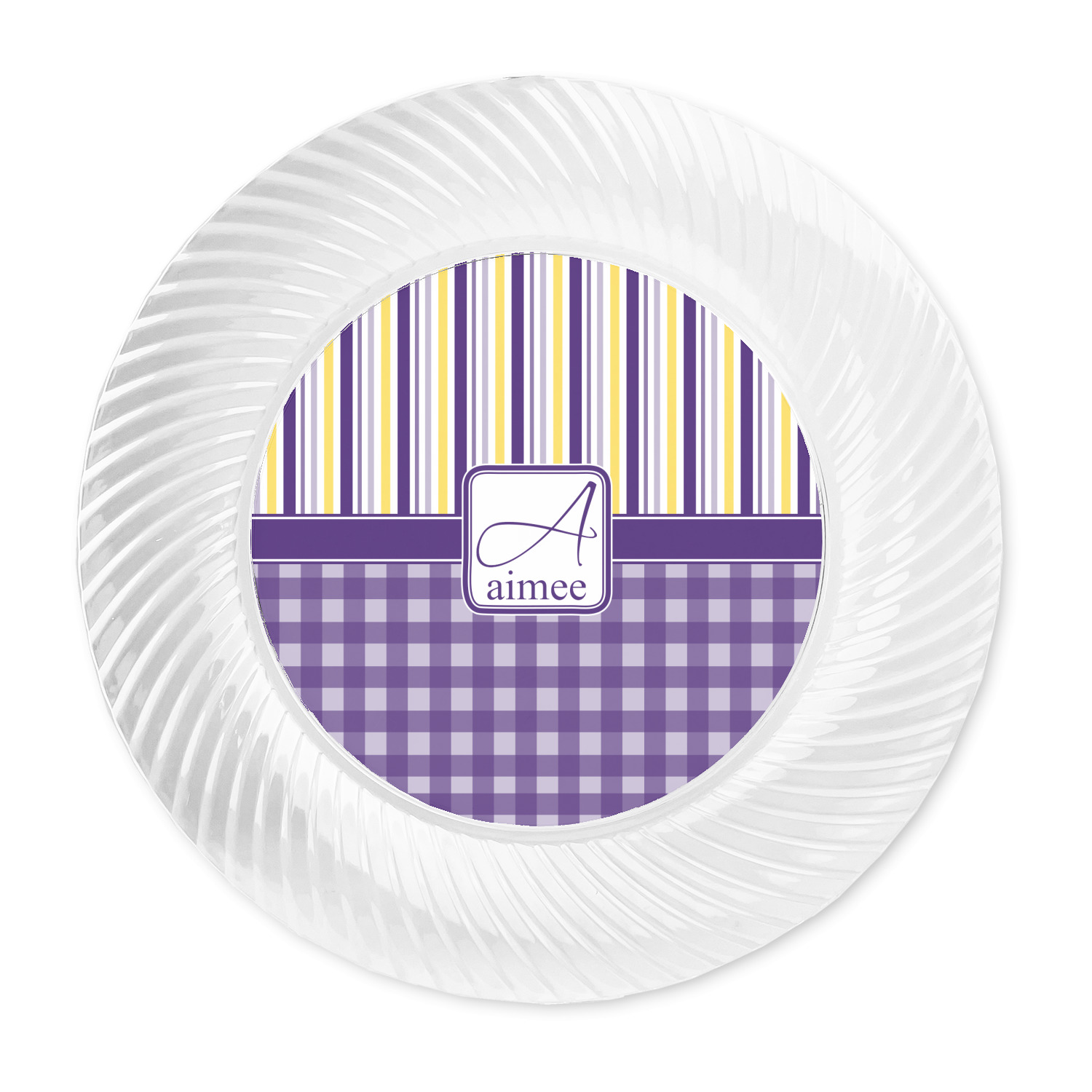 Made from a beautiful clear plastic plate as a base, your design is printed to the underside of the plate. The outside of these disposable plates has a classic swirl texture to it for a high quality look and feel.
