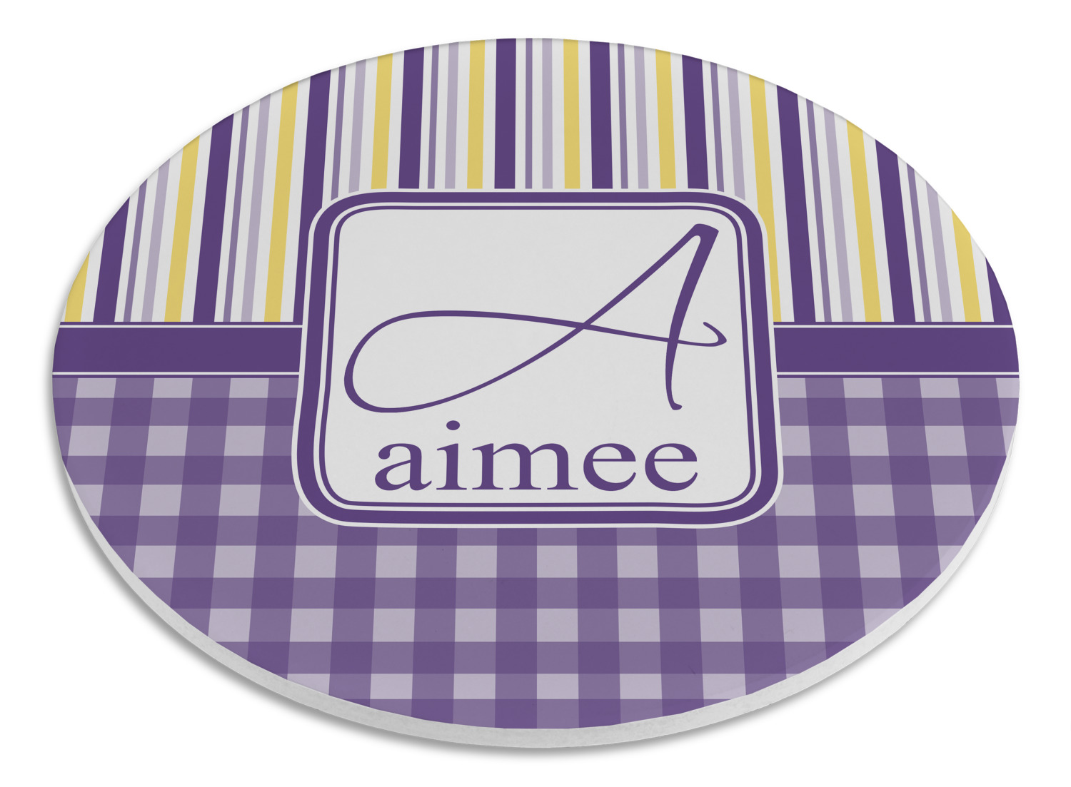 To tie both patterns together a purple band has been added to spotlight the personalization of the customer's choosing.