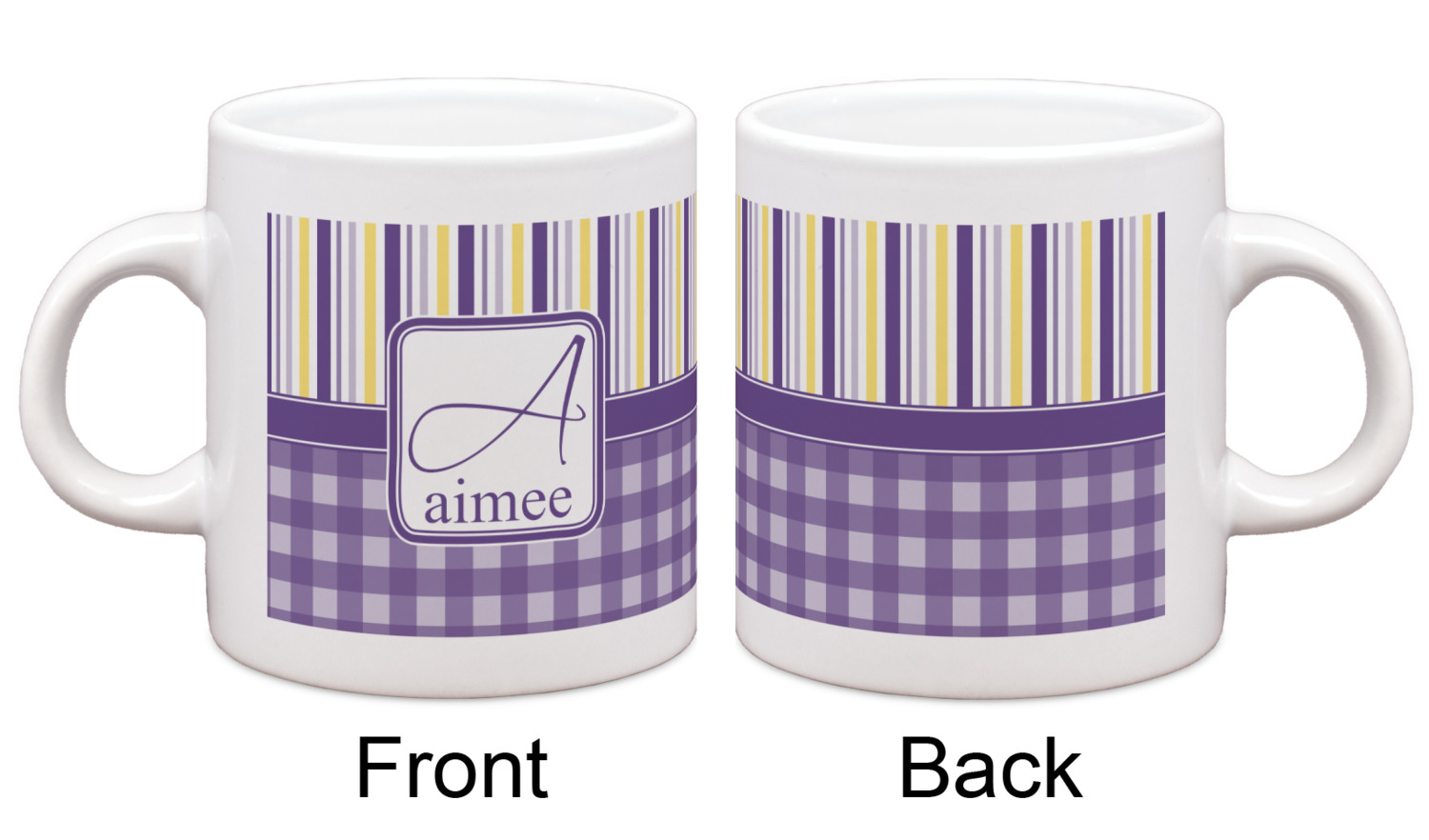 Each of our espresso mugs is a ceramic material sure to keep your drink warm. Personalize one cup for yourself, or order a set of 4! Its the perfect little gift for any coffee lover! We carry two sizes for you to personalize - 3 oz. (approx. 3.25" x 2.325" x 2.625") or 6 oz. (approx. 4" x 2.9" x 2.9"). Our 3 oz. mug is perfect for that single shot espresso while our 6 oz. mug can be your next favorite cappuccino cup holding two shots of espresso!