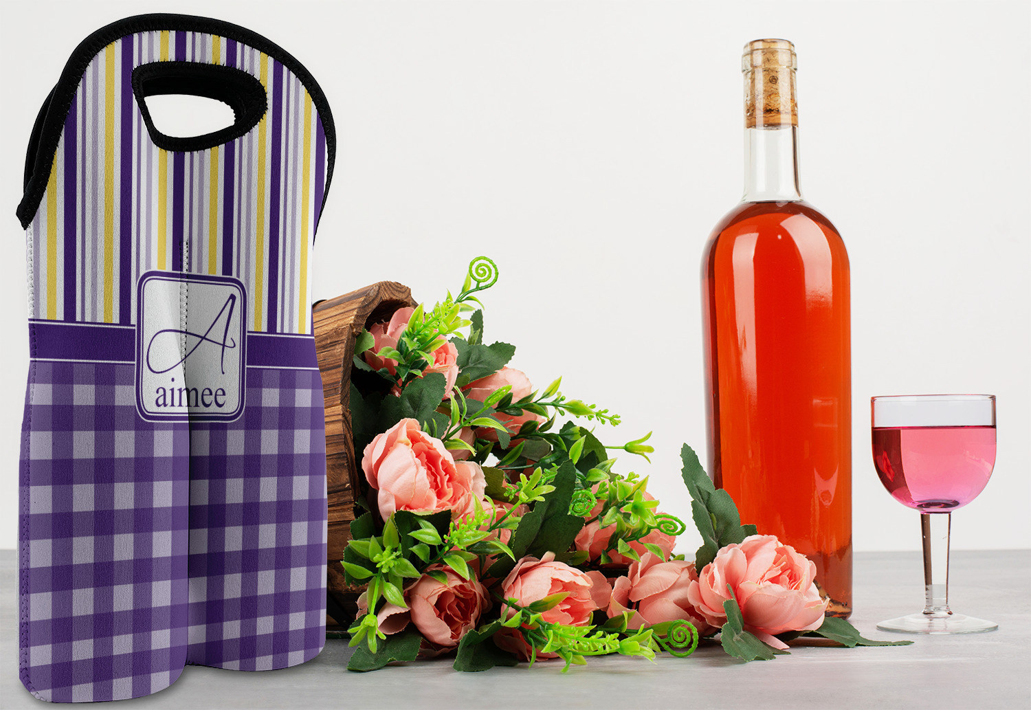 | SKU | mi-wine-tote-double+Purple-Gingham-Stripe |