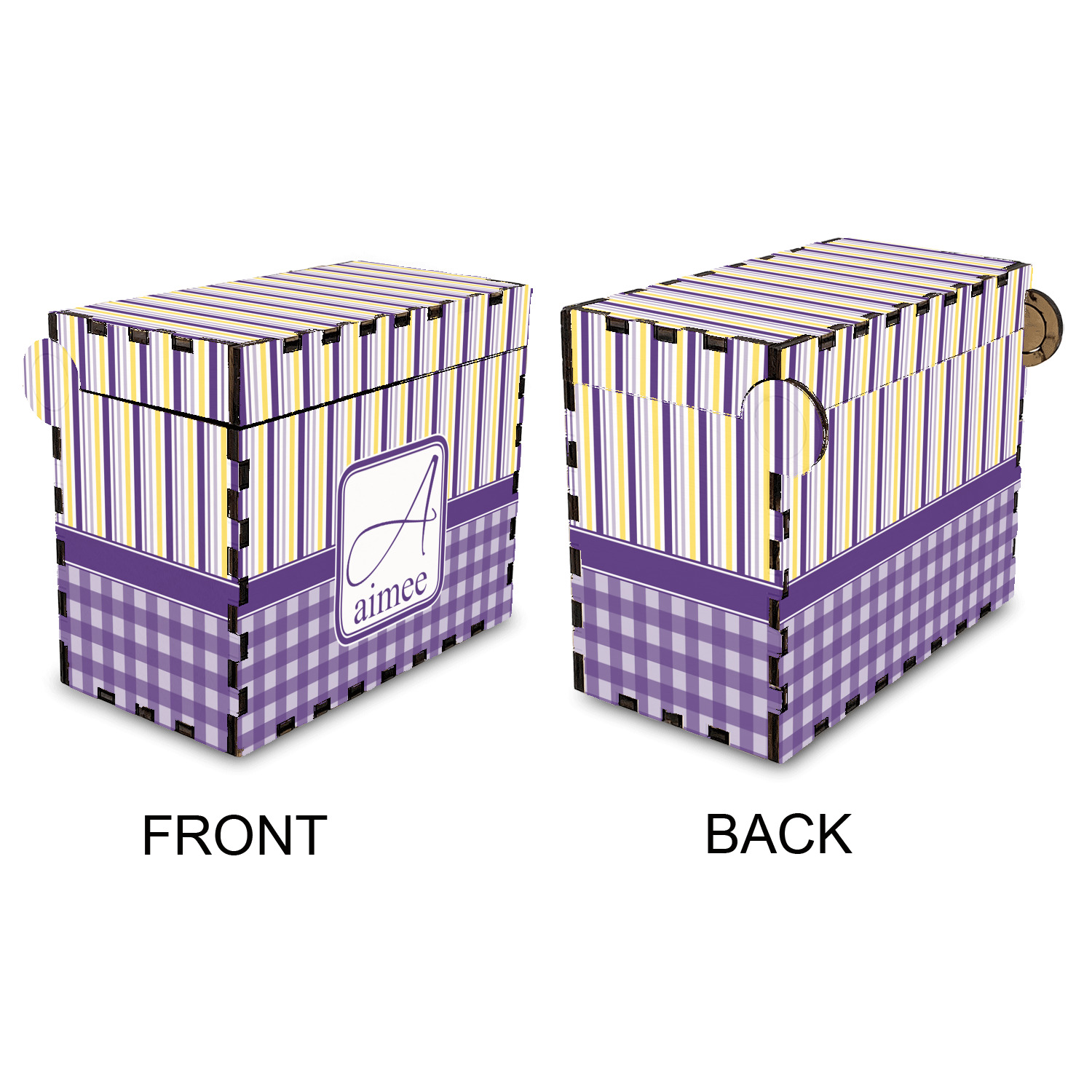 To tie both patterns together a purple band has been added to spotlight the personalization of the customer's choosing.