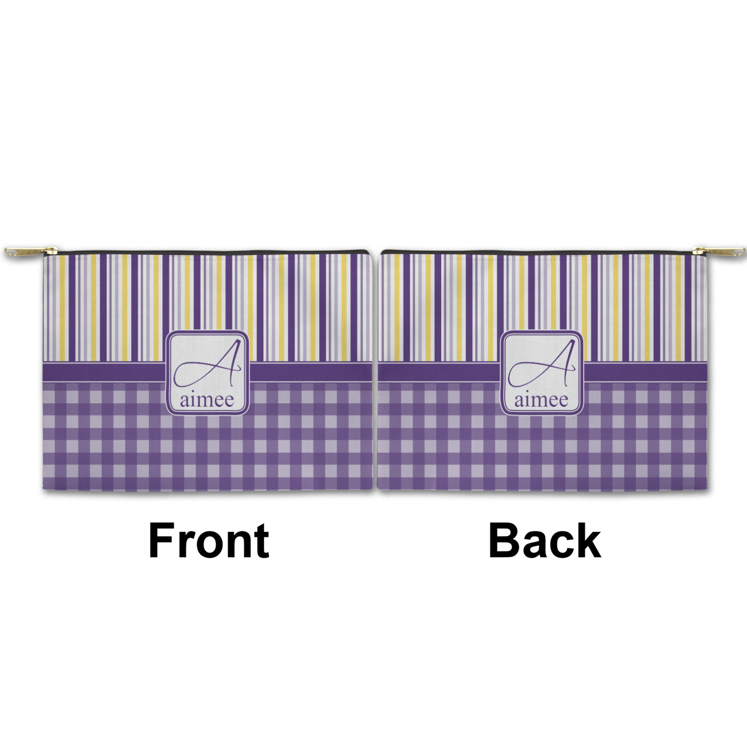 You can design both the front and the back of the pouch - same design, two complementary designs or two totally different designs - the choice is yours! We offer many different personalization styles i.e. name, name & initial, monograms - so the choice to personalize is also yours.