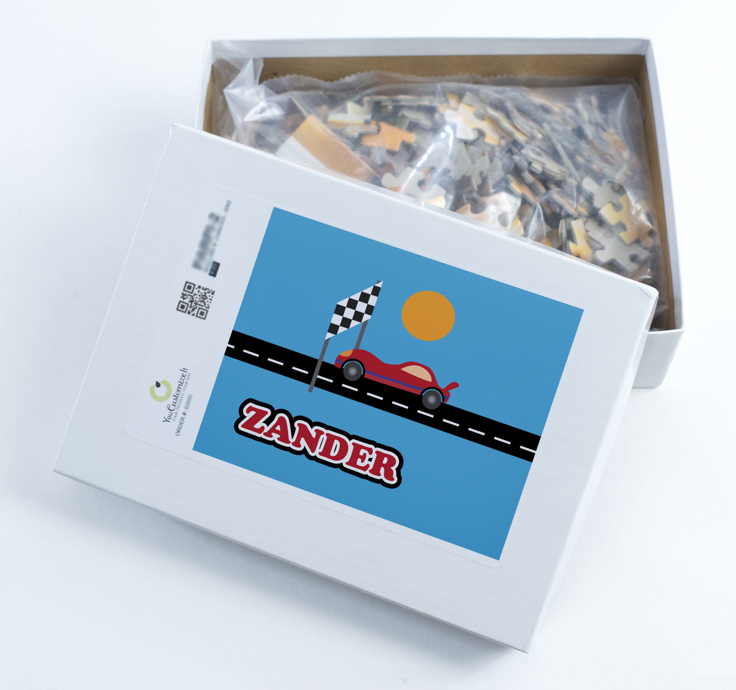 We print our puzzles on thick white chipboard in vibrant colors, then laminate the chipboard and die cut your puzzle. Your jigsaw puzzle is shipped to you in a box with the image of the puzzle on the box.