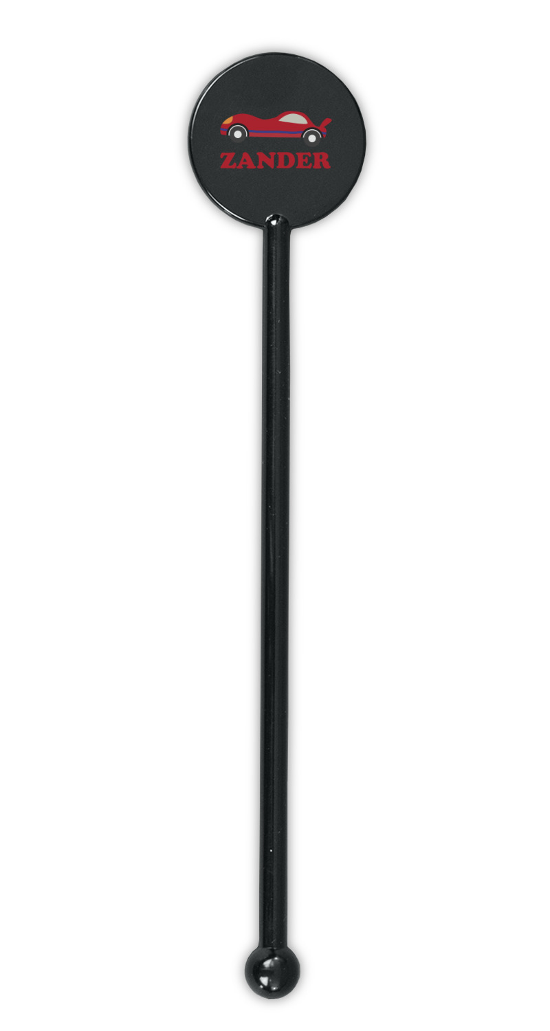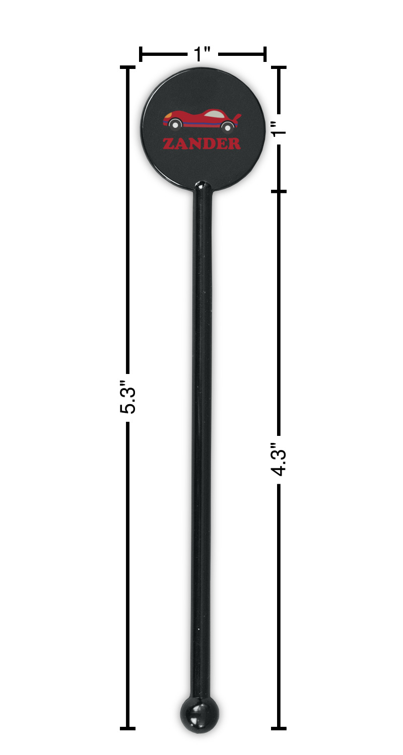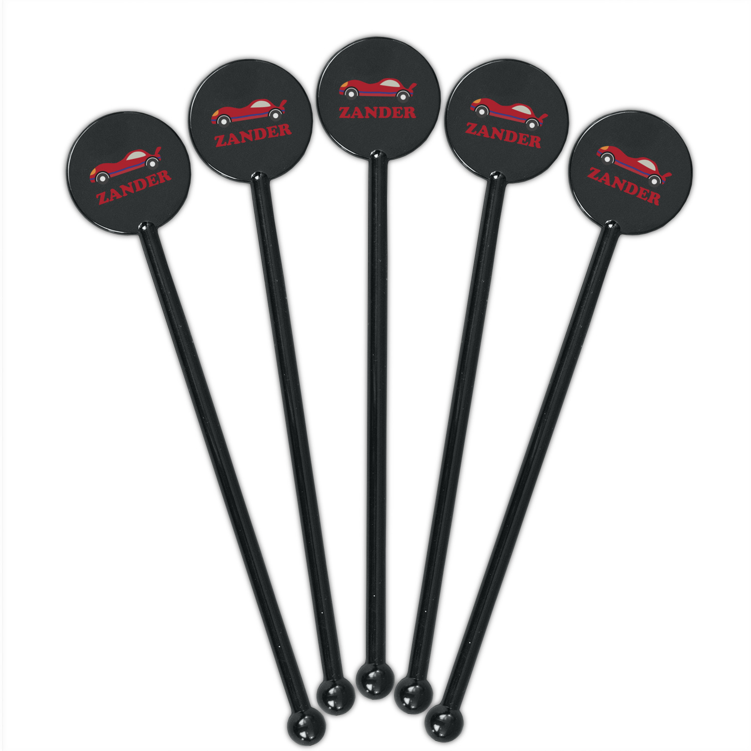 Race Car Designs for 5.5" Round Plastic Stir Sticks - Black - Double-Sided