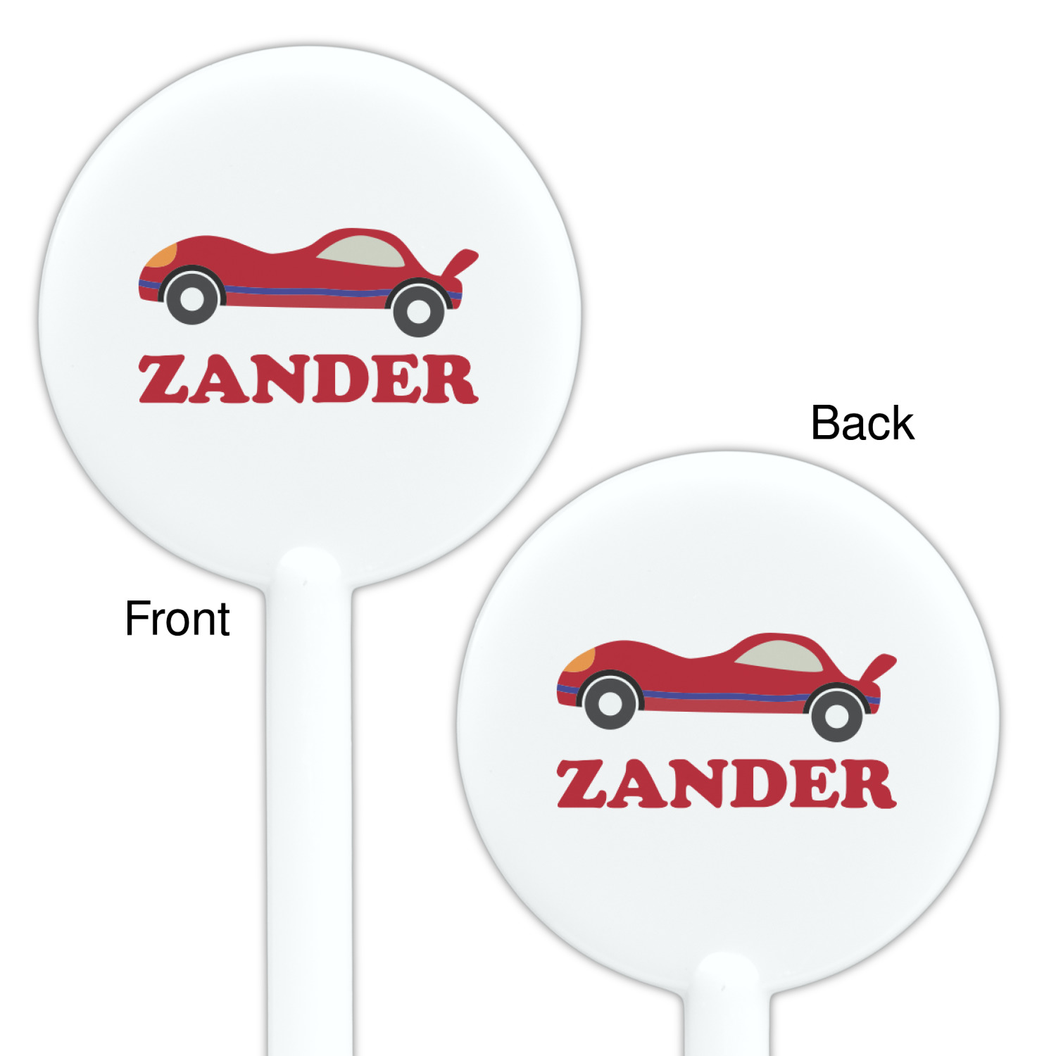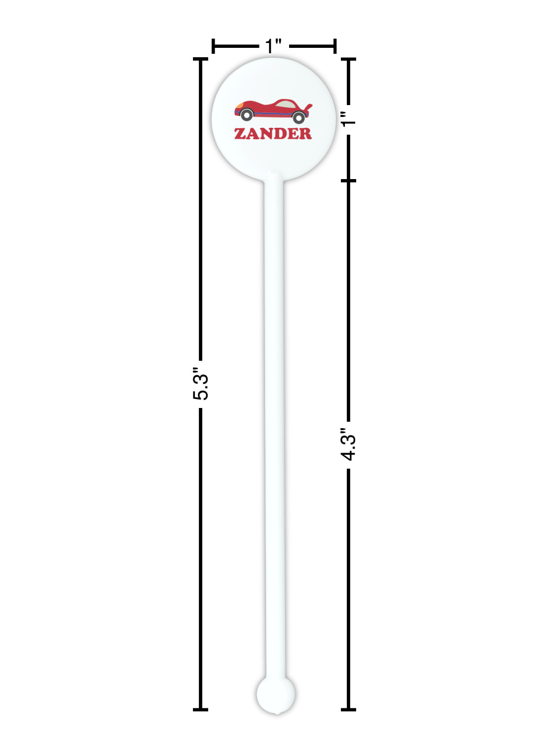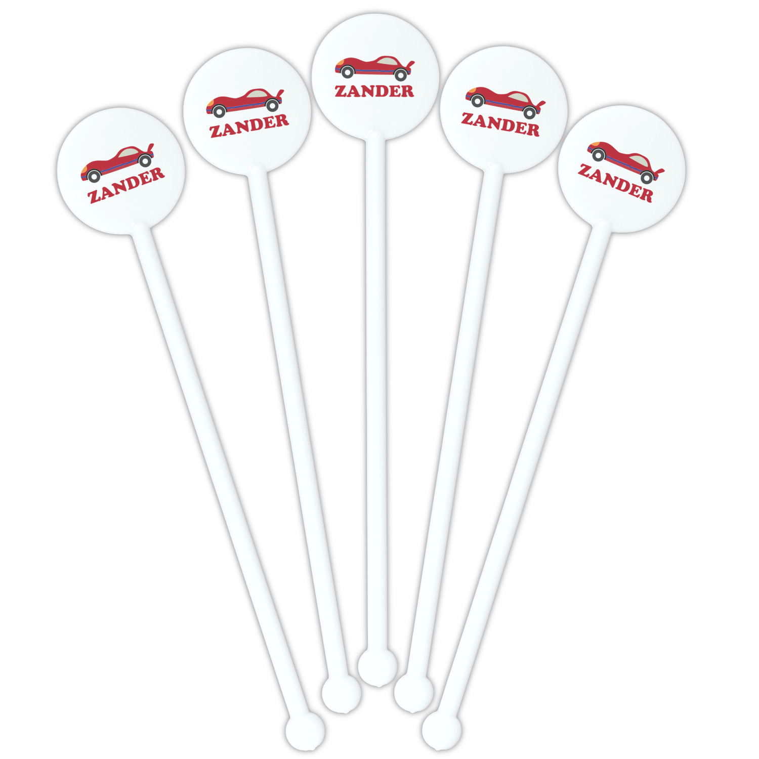 Race Car Designs for 5.5" Round Plastic Stir Sticks - White - Double-Sided