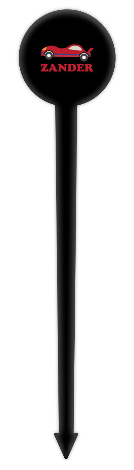 Race Car Designs for 6" Round Plastic Food Picks - Black - Single-Sided