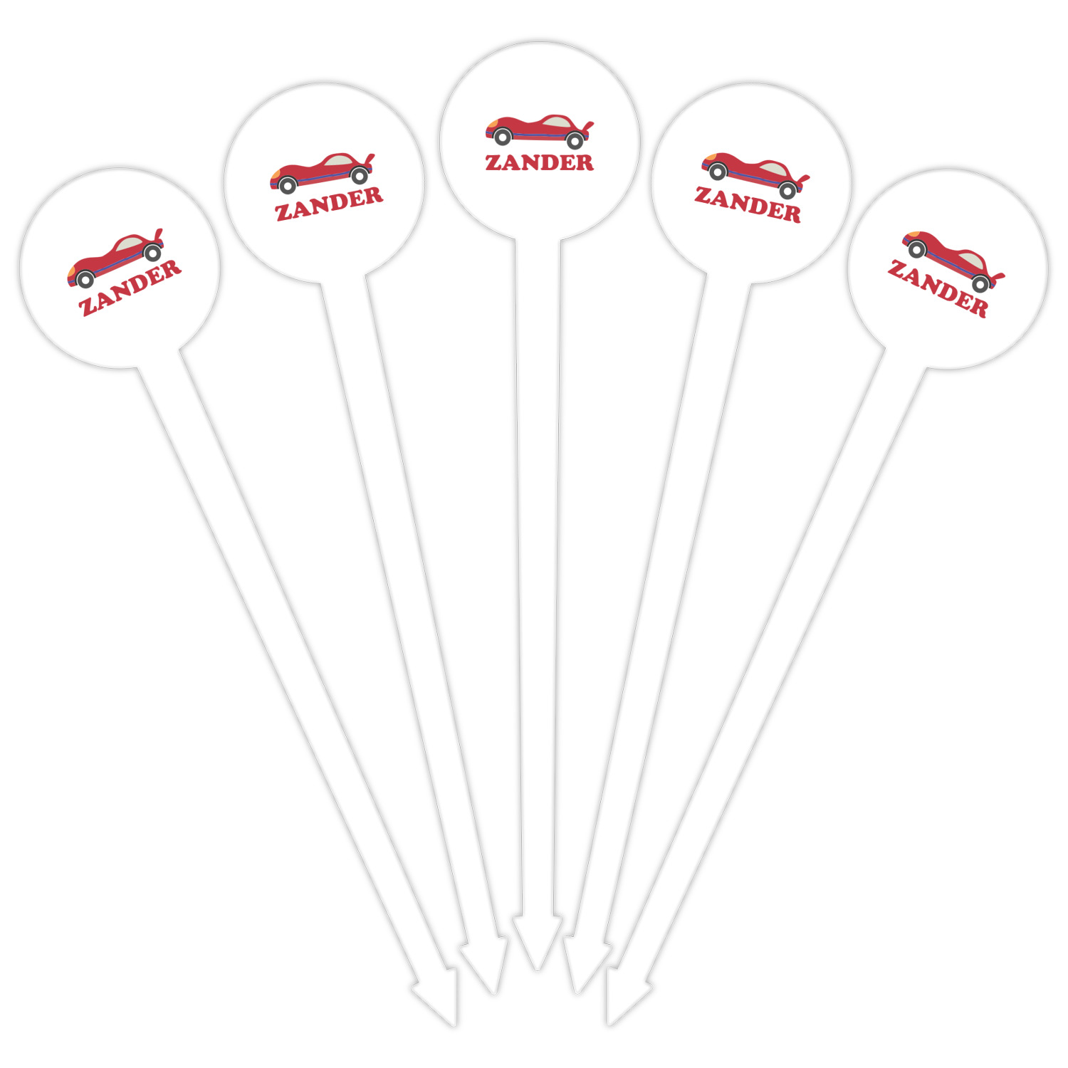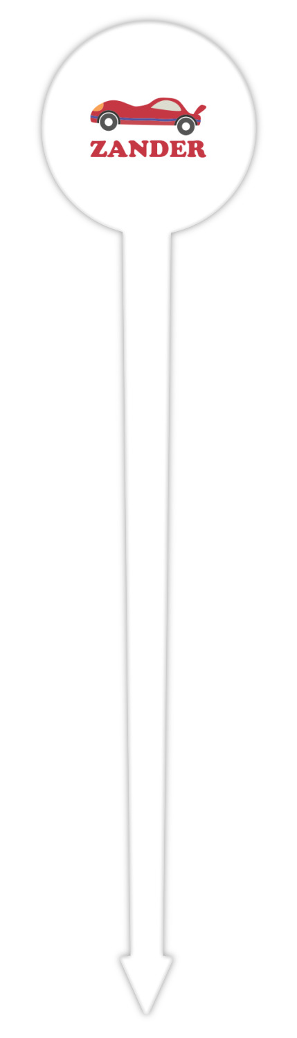 Race Car Designs for 6" Round Plastic Food Picks - White - Single-Sided