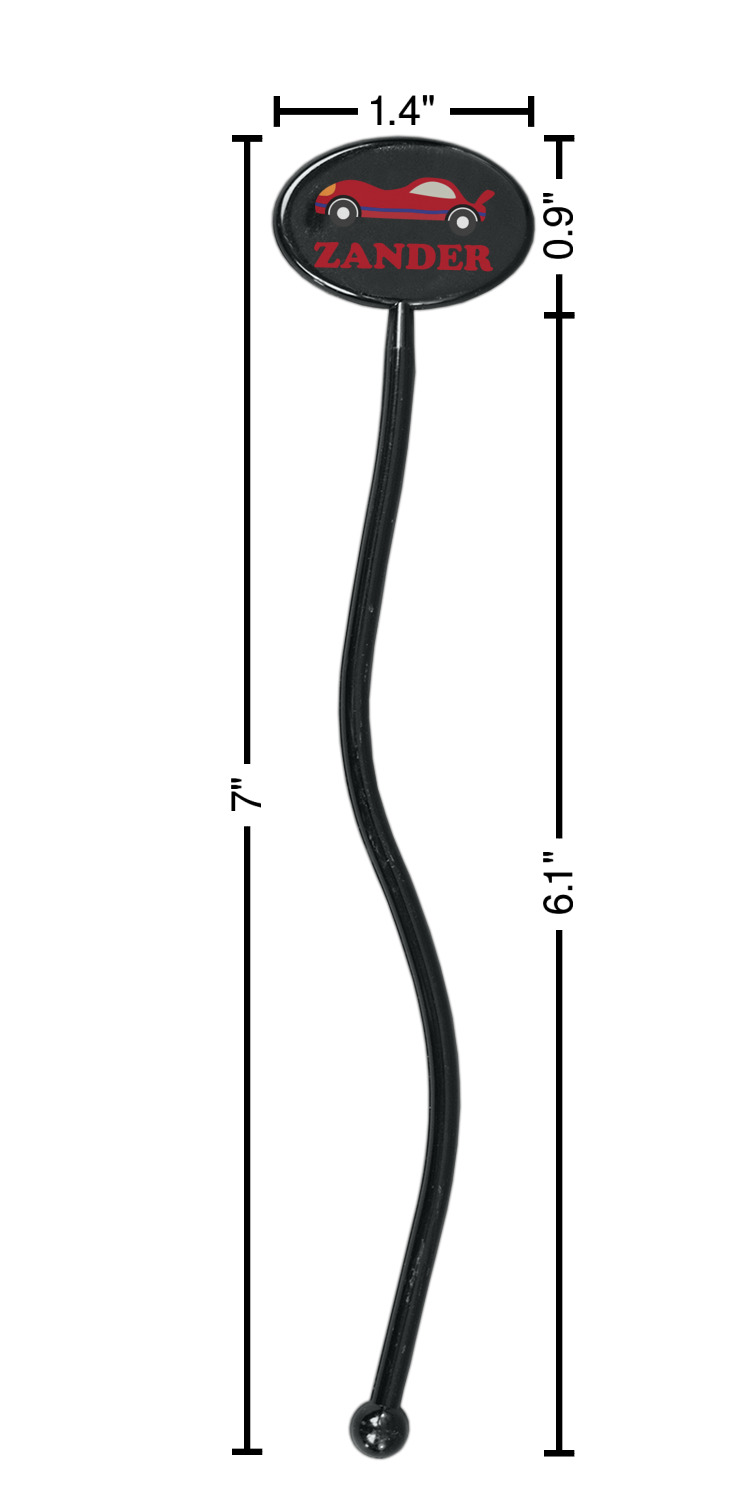 Race Car Designs for 7" Oval Plastic Stir Sticks - Black - Double-Sided