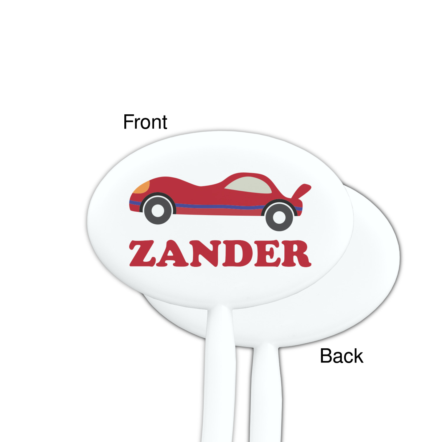 Race Car Designs for 7" Oval Plastic Stir Sticks - White - Single-Sided