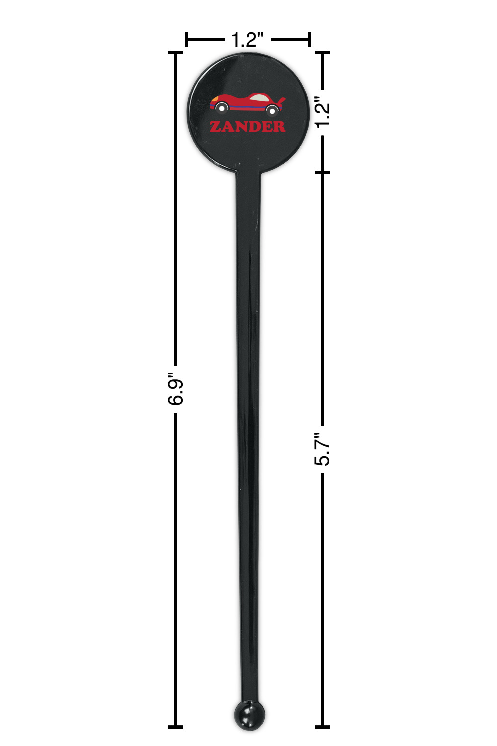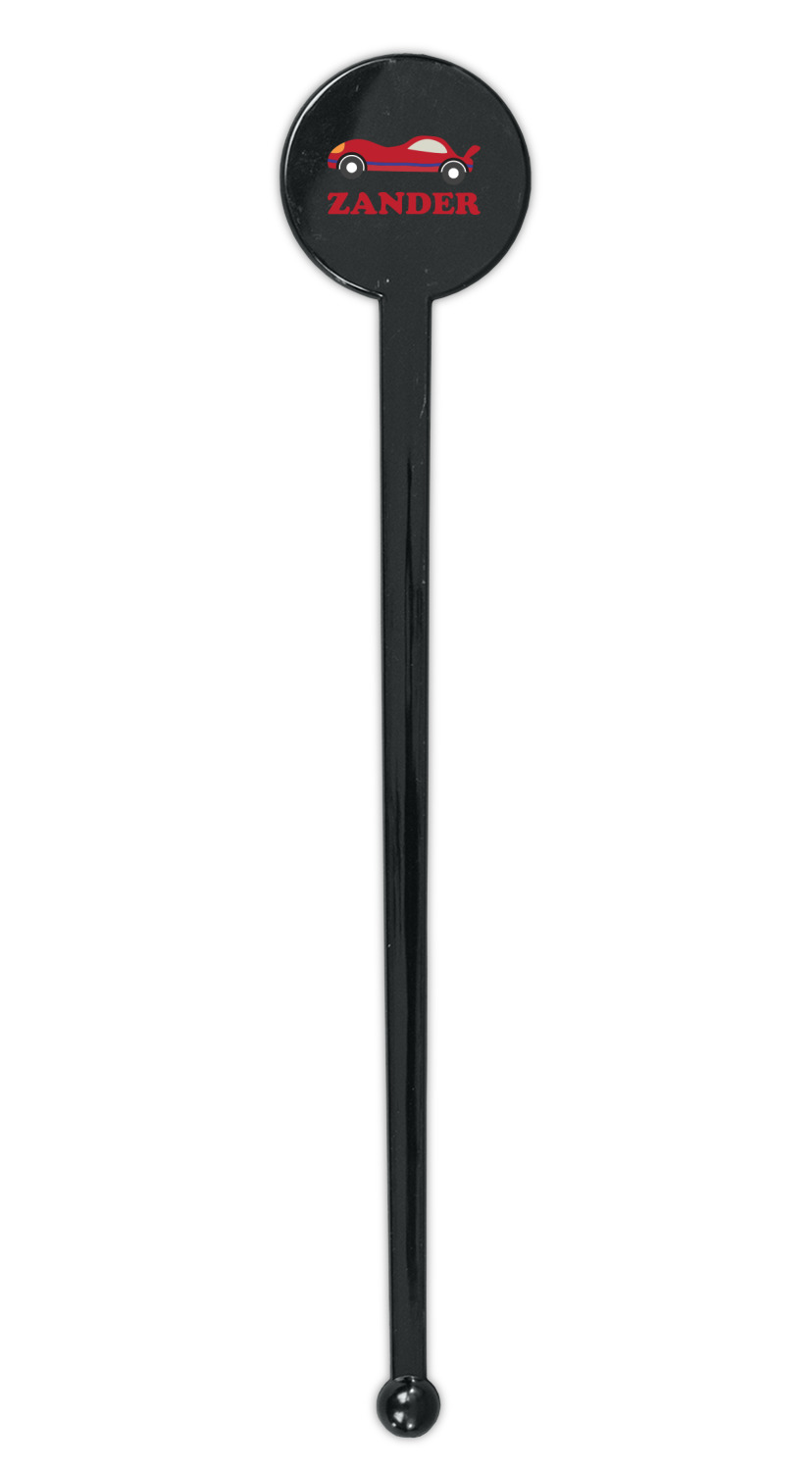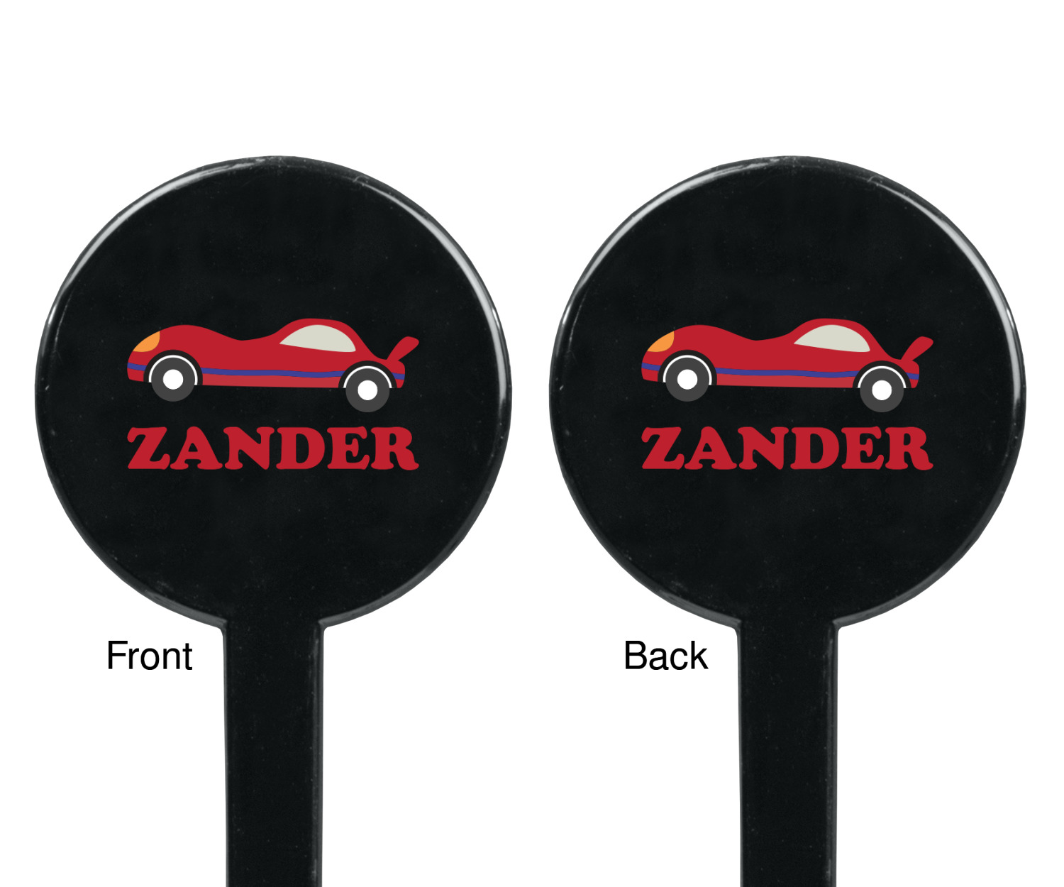 Race Car Designs for 7" Round Plastic Stir Sticks - Black - Double-Sided
