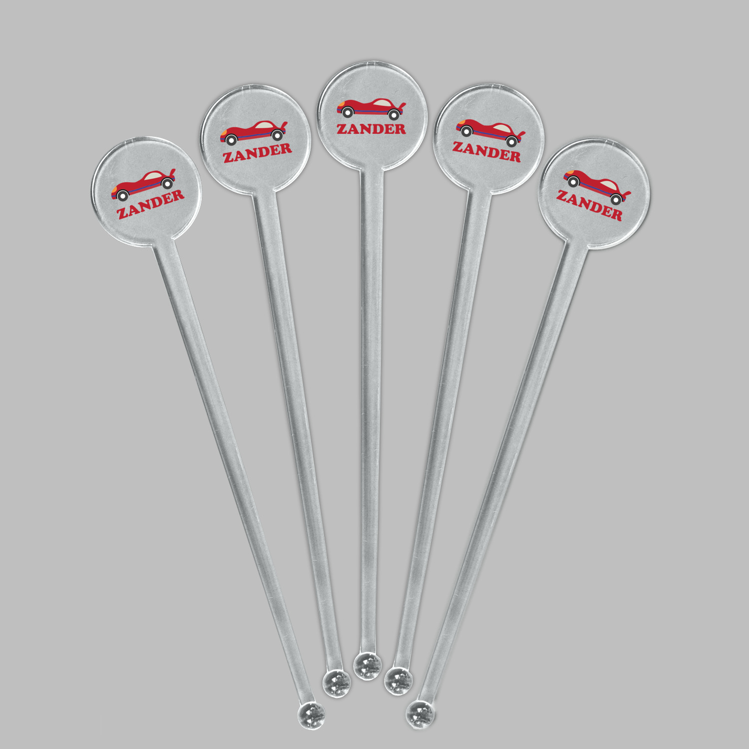 Race Car Designs for 7" Round Plastic Stir Sticks - Clear