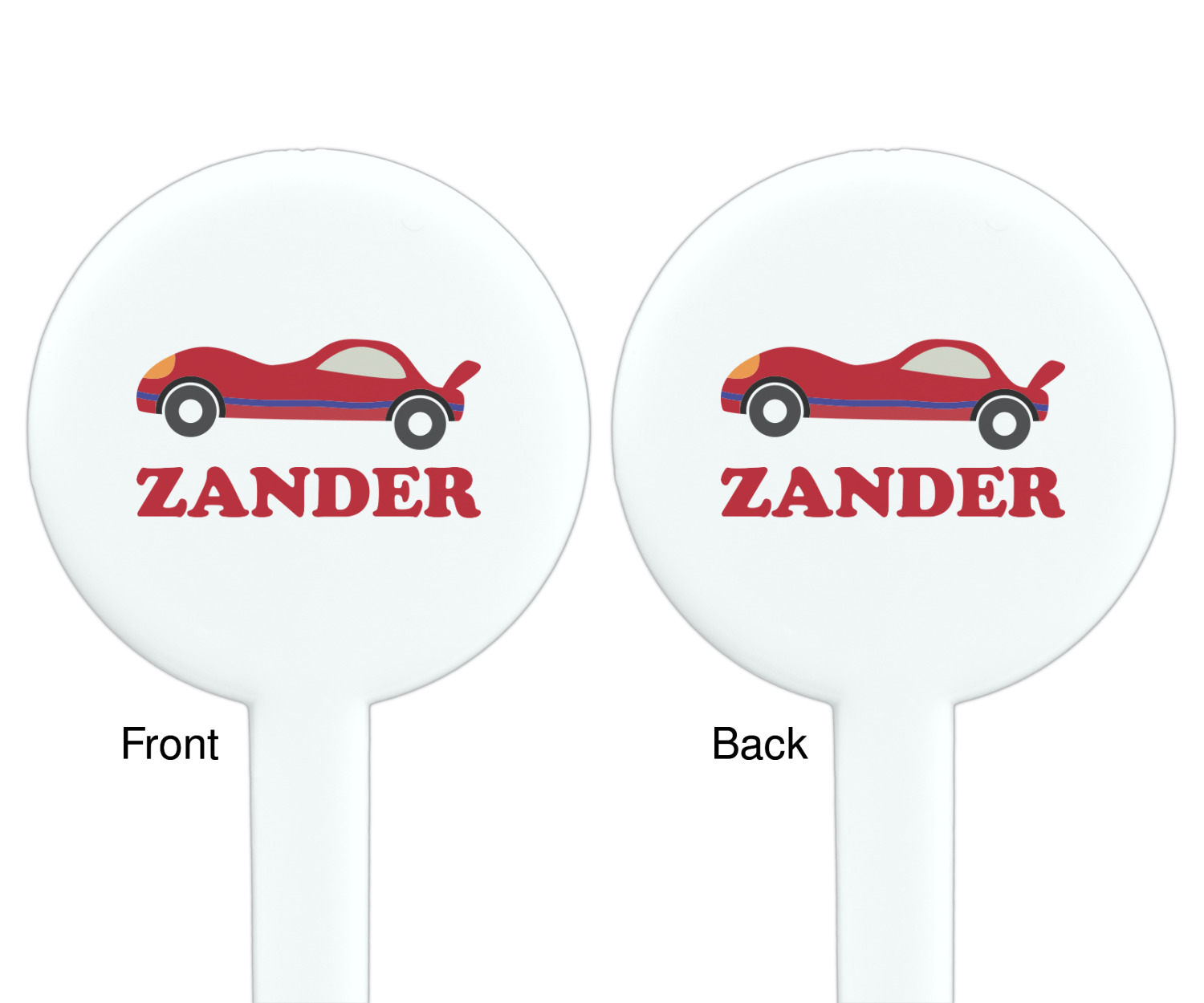 Race Car Designs for 7" Round Plastic Stir Sticks - White - Double-Sided