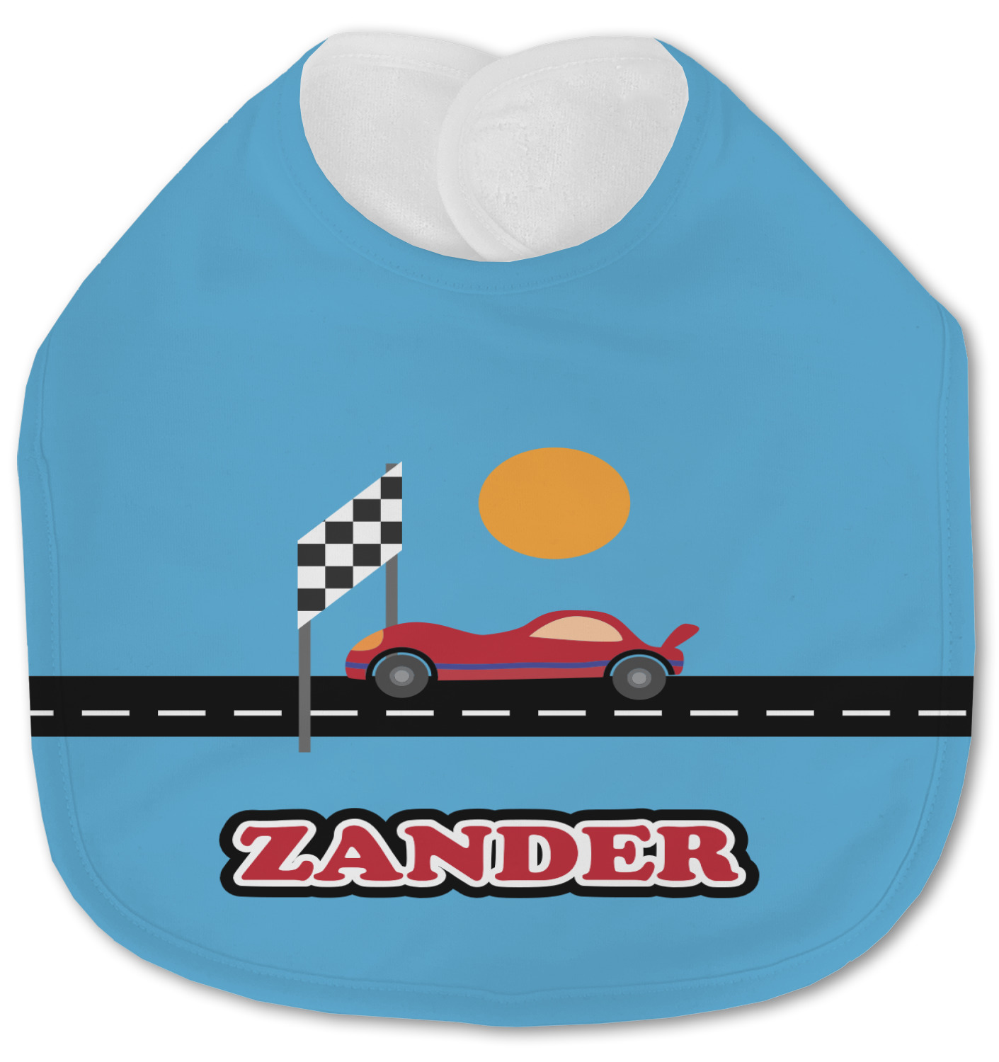 Does your little guy dream of being a race car driver? Make his eyes light up with his very own race car! Our fun red race car is on the track and heading for 1st place under the checkered banner. The car scene is set on a beautiful blue background with the bright sun looking down.