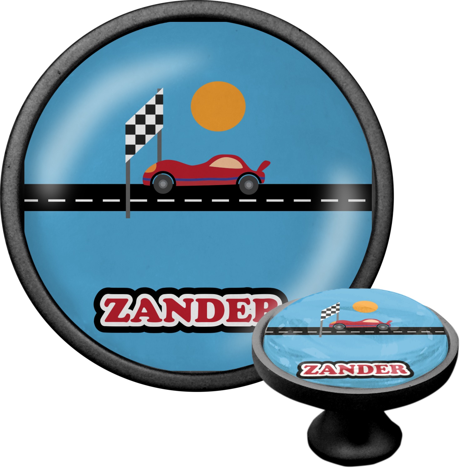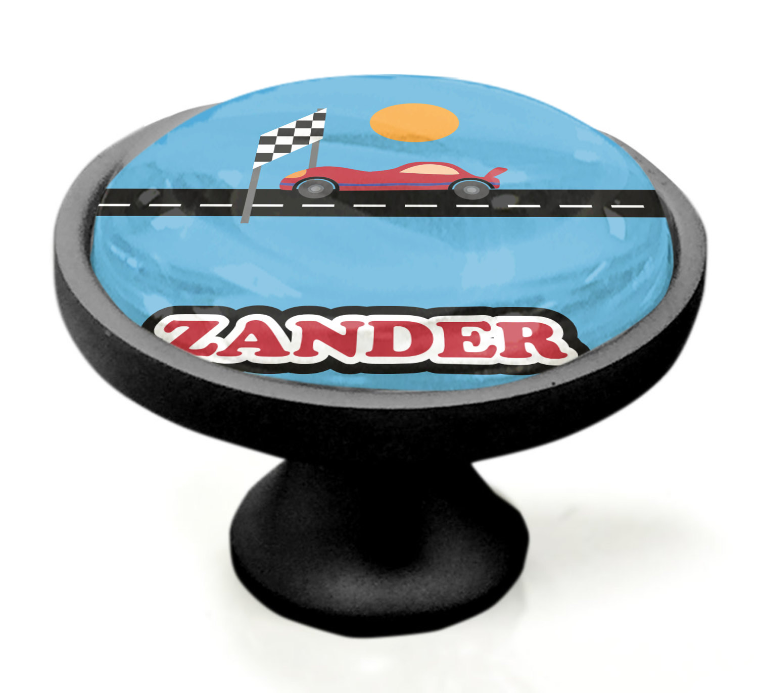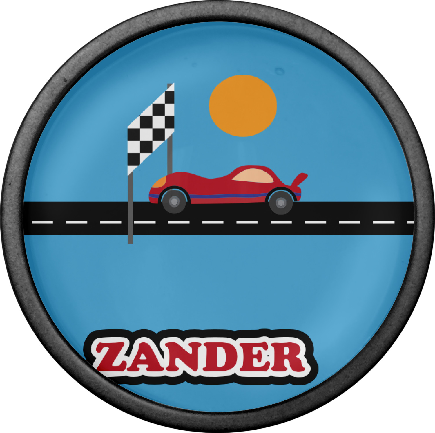 Does your little guy dream of being a race car driver? Make his eyes light up with his very own race car! Our fun red race car is on the track and heading for 1st place under the checkered banner. The car scene is set on a beautiful blue background with the bright sun looking down.