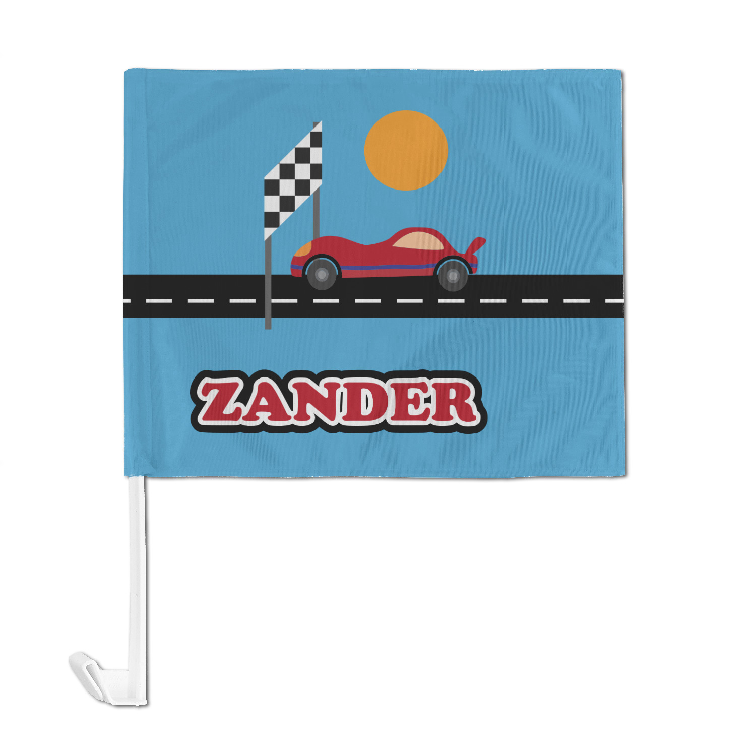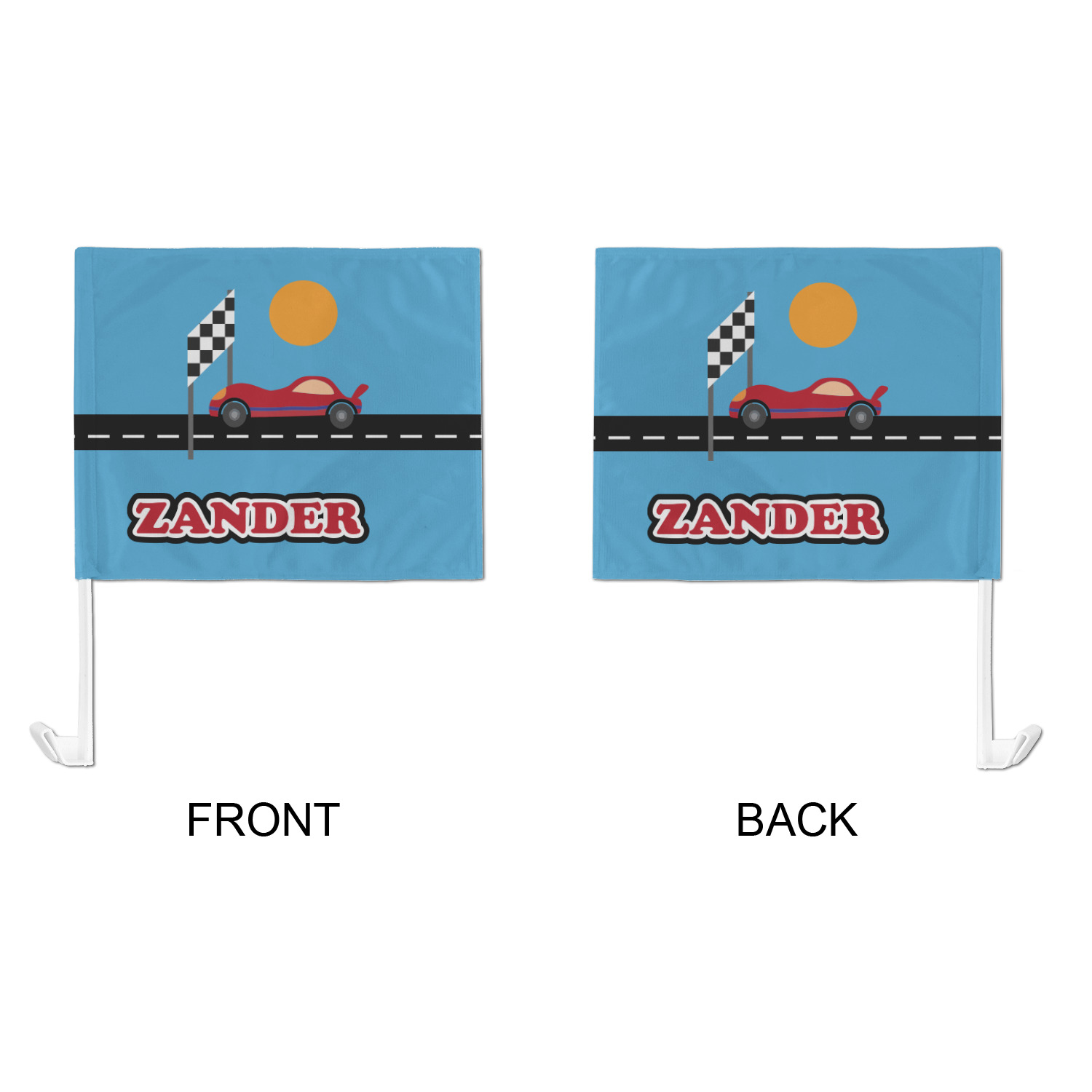 Our personalized flags are made from a durable, yet lightweight cloth that will proudly bear your logo or design of choice, while withstanding the outside elements. We have two size options - 8" x 11" and 11" x 15". Both come with a flag pole which includes a clip that secures the pole to the side window, whether it is rolled up or down. The flags are printed on both sides to display your design from all directions.