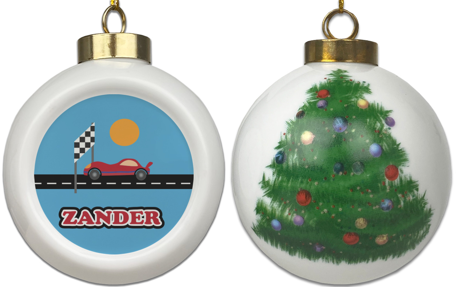 Race Car Designs for Ceramic Ball Ornaments - Christmas Tree