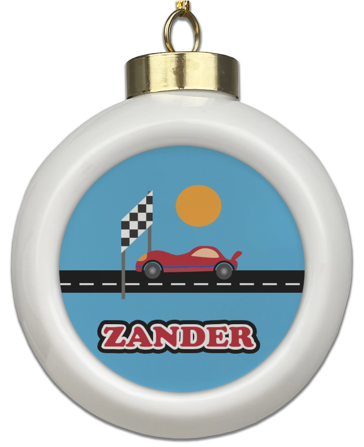Does your little guy dream of being a race car driver? Make his eyes light up with his very own race car! Our fun red race car is on the track and heading for 1st place under the checkered banner. The car scene is set on a beautiful blue background with the bright sun looking down.