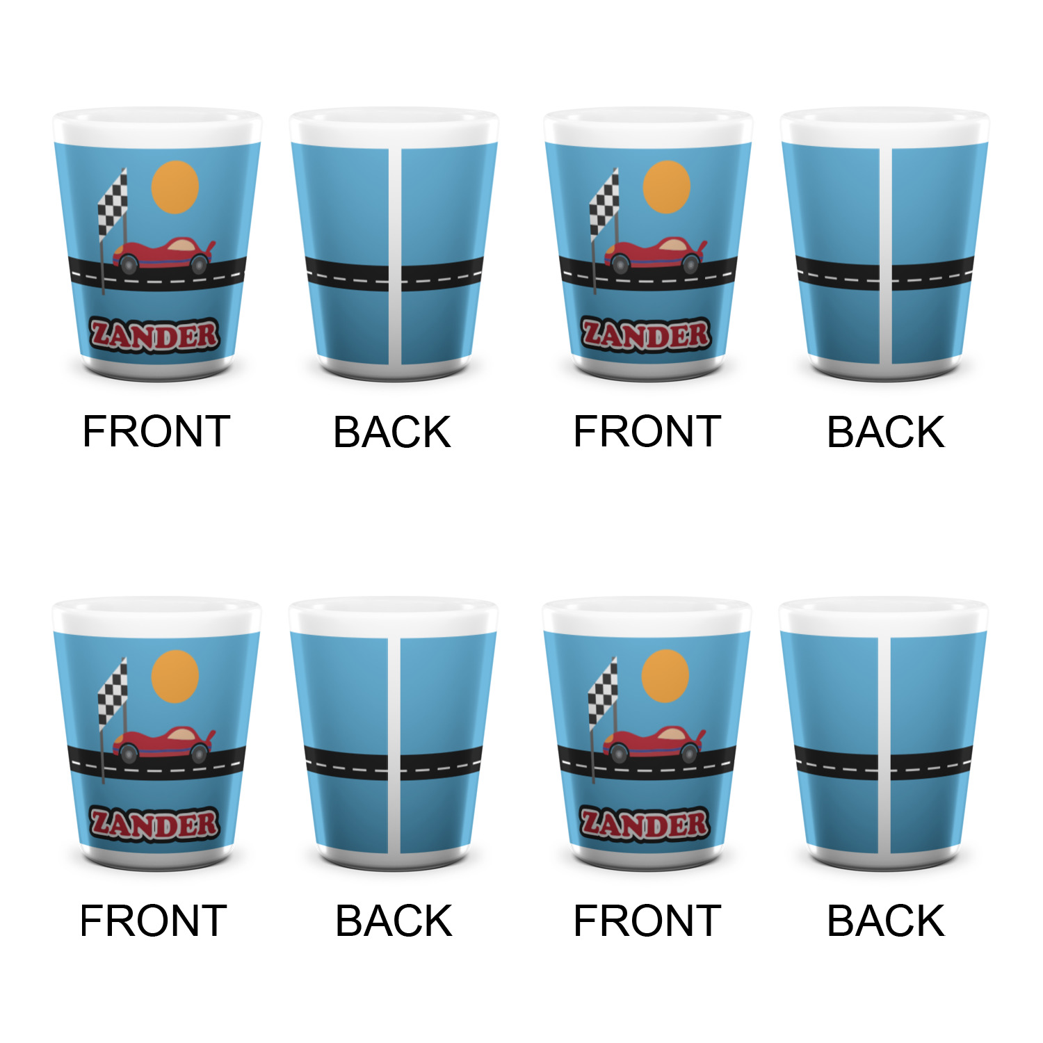 Race Car Designs for Ceramic Shot Glasses - 1.5 oz - White - Set of 4