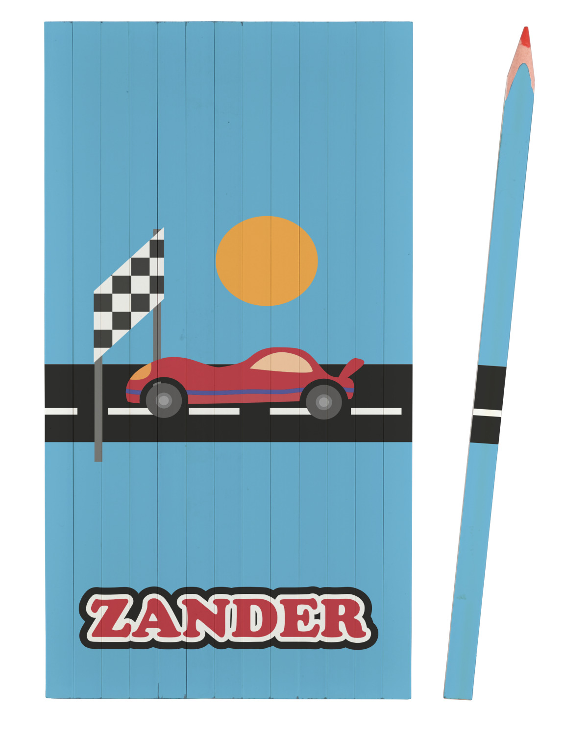 Does your little guy dream of being a race car driver? Make his eyes light up with his very own race car! Our fun red race car is on the track and heading for 1st place under the checkered banner. The car scene is set on a beautiful blue background with the bright sun looking down.