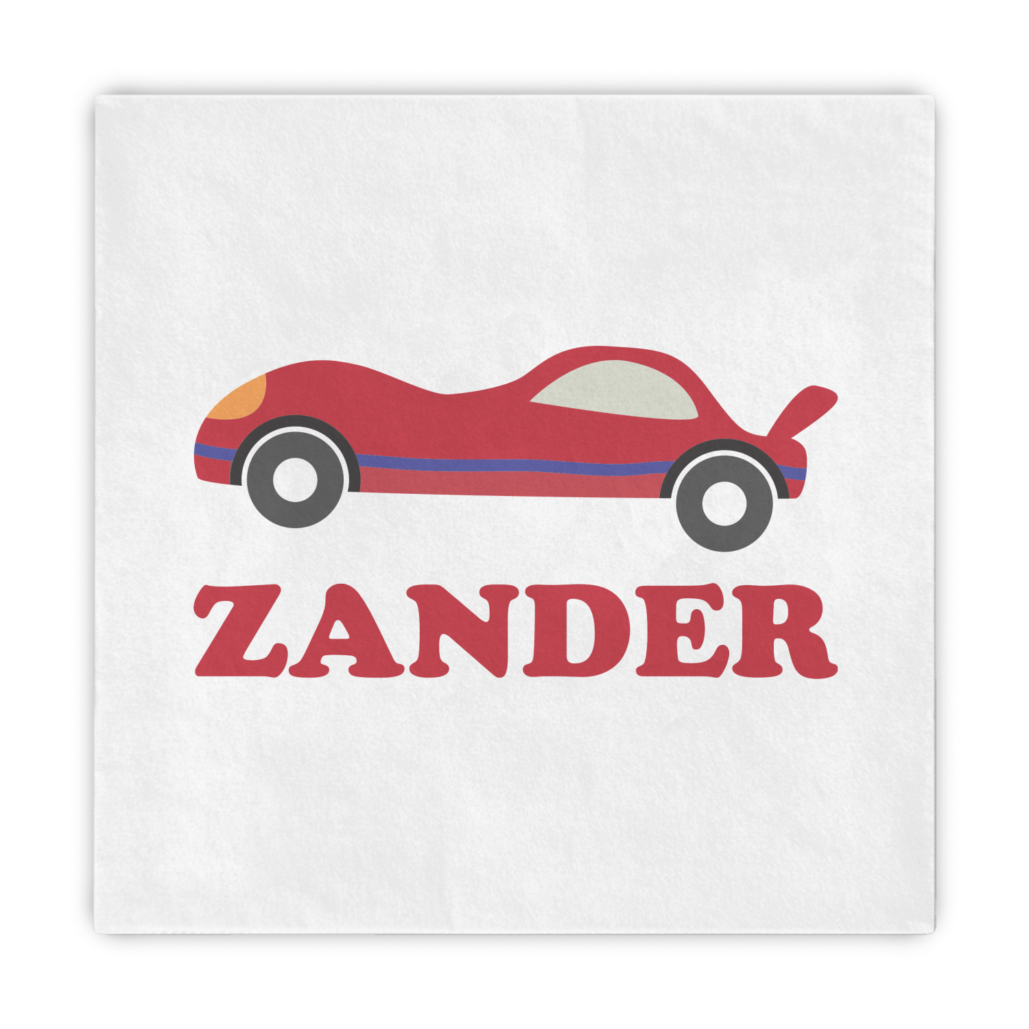 Does your little guy dream of being a race car driver? Make his eyes light up with his very own race car! Our fun red race car is on the track and heading for 1st place under the checkered banner. The car scene is set on a beautiful blue background with the bright sun looking down.