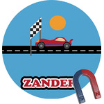 Does your little guy dream of being a race car driver? Make his eyes light up with his very own race car! Our fun red race car is on the track and heading for 1st place under the checkered banner. The car scene is set on a beautiful blue background with the bright sun looking down.