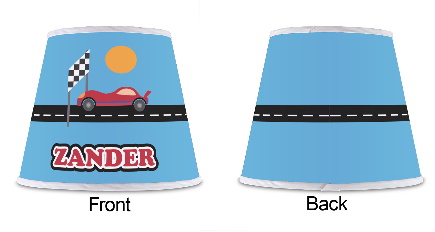 The base of this lampshade is 12 inches in diameter, and the top spans 8 inches in diameter. The total height of the lampshade is 10 inches. The angled nature of this custom lampshade concentrates the light, making it ideal for smaller spaces. This lampshade is made of matte, polyfilm, and displays your customization in its middle. The top and bottom of this colorful lamp shade are lined with a white fabric ribbon (which can be replaced with black inside the design studio) which frames your design and creates a sophisticated finish. As an UNO fitter lampshade, this unique lamp shade will fit a variety of bases.