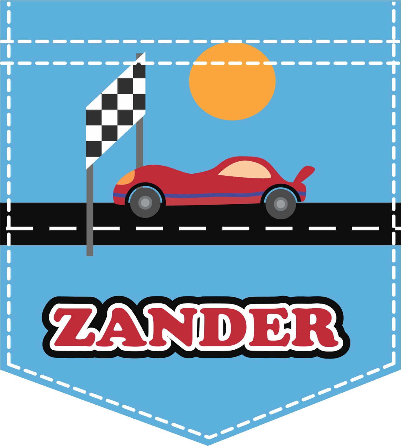 Does your little guy dream of being a race car driver? Make his eyes light up with his very own race car! Our fun red race car is on the track and heading for 1st place under the checkered banner. The car scene is set on a beautiful blue background with the bright sun looking down.