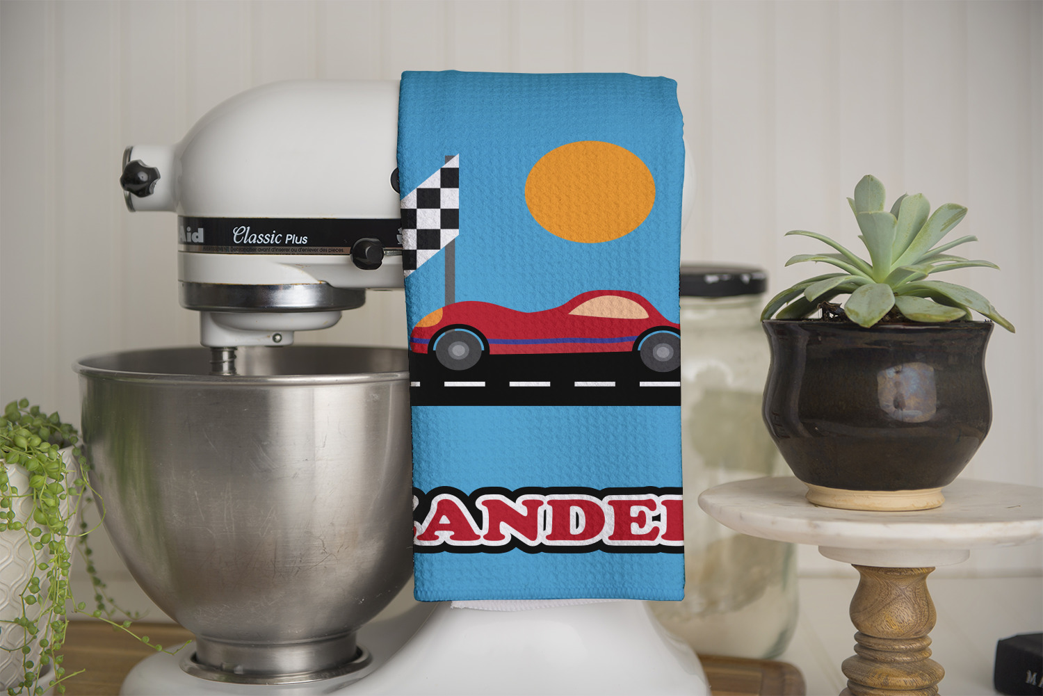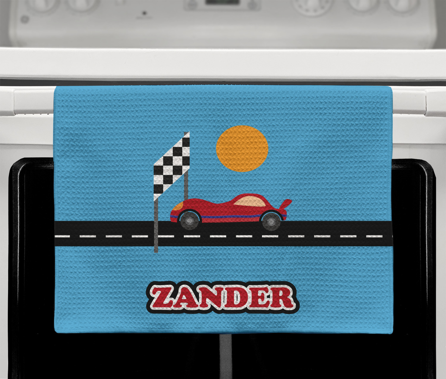 Race Car Designs for Kitchen Towels - Waffle Weave - Full Color Print