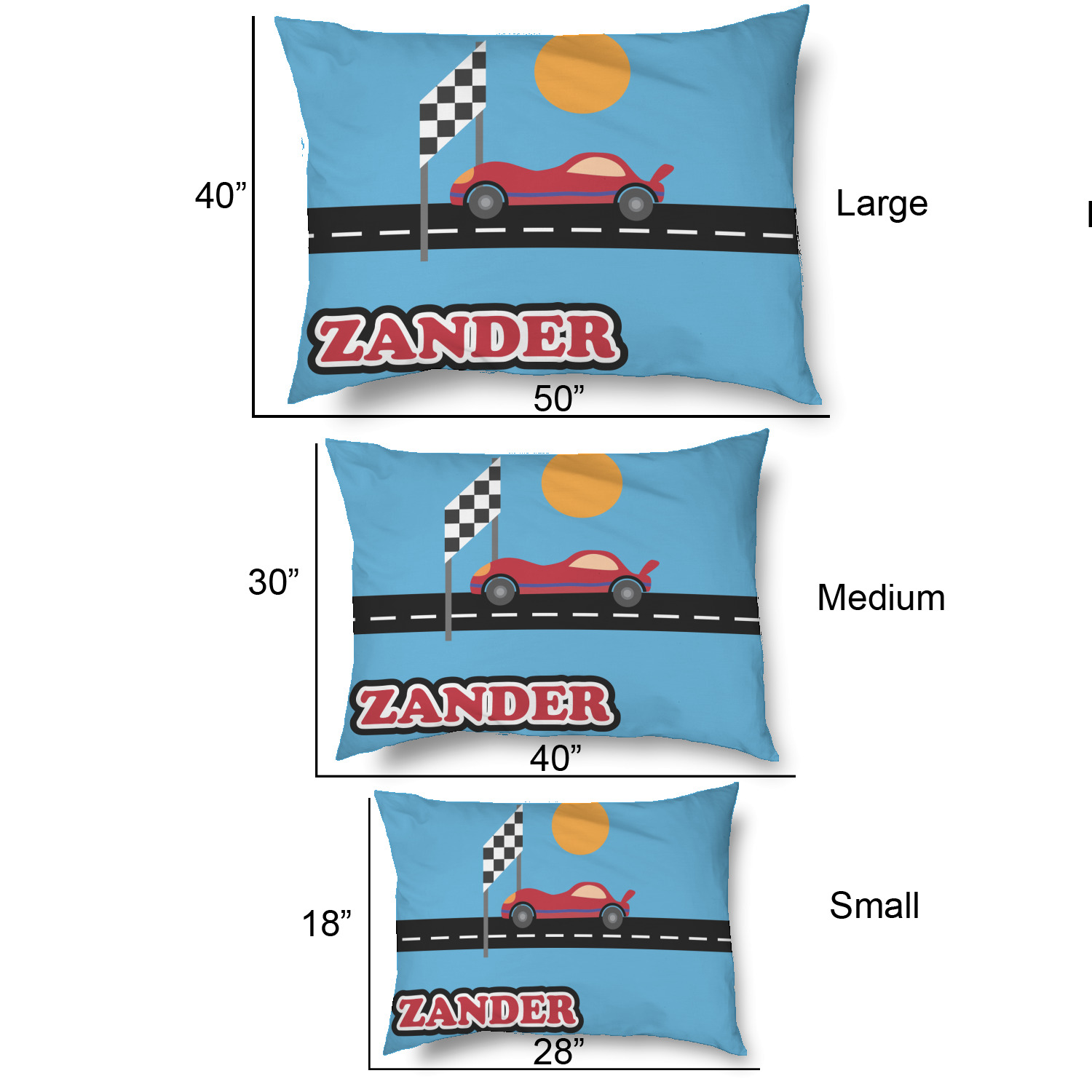 Does your little guy dream of being a race car driver? Make his eyes light up with his very own race car! Our fun red race car is on the track and heading for 1st place under the checkered banner. The car scene is set on a beautiful blue background with the bright sun looking down.
