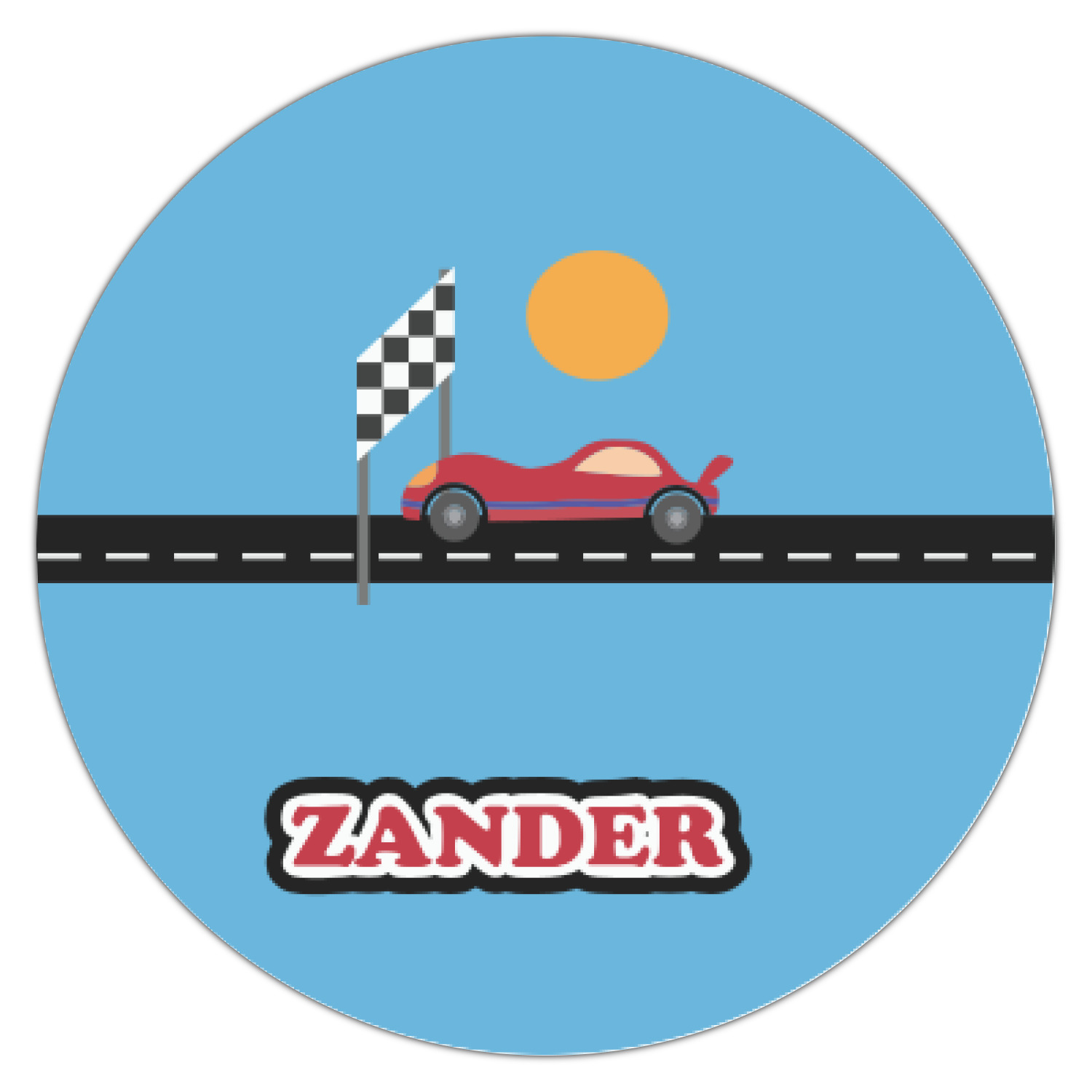 Does your little guy dream of being a race car driver? Make his eyes light up with his very own race car! Our fun red race car is on the track and heading for 1st place under the checkered banner. The car scene is set on a beautiful blue background with the bright sun looking down.