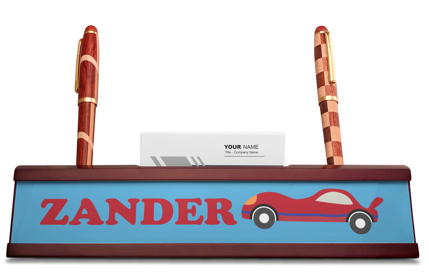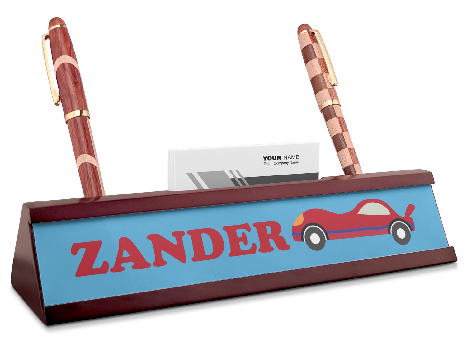 Race Car Designs for Red Mahogany Nameplates with Business Card Holder