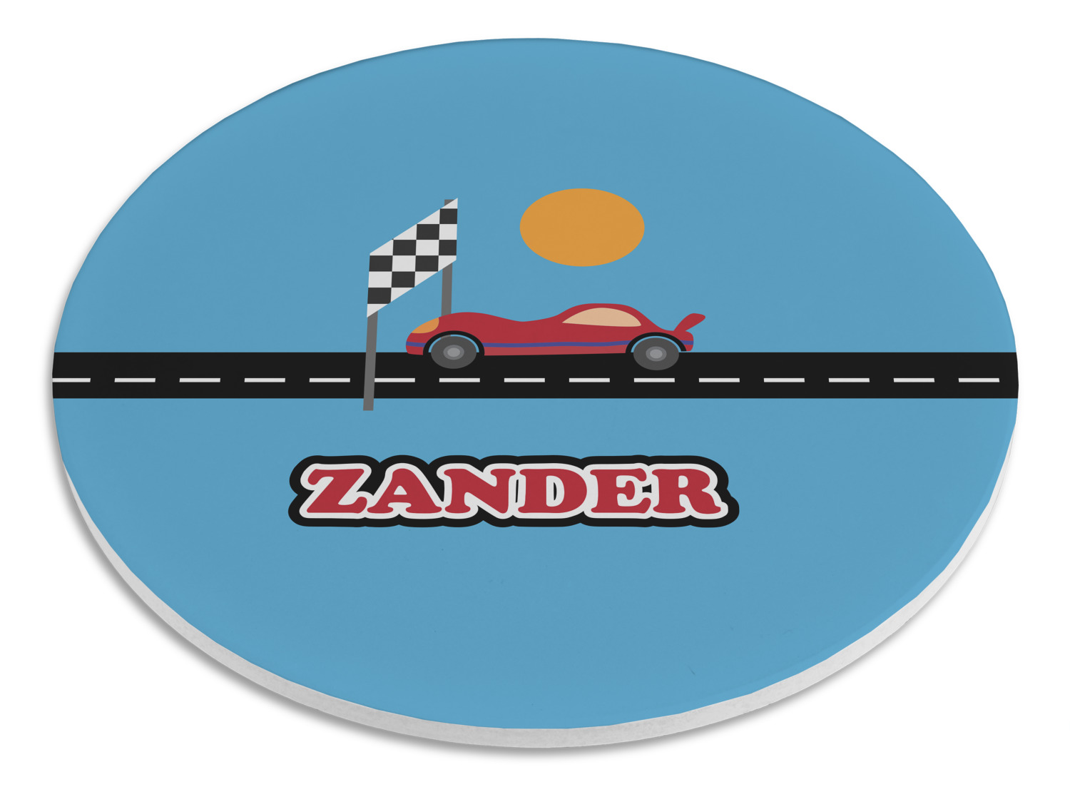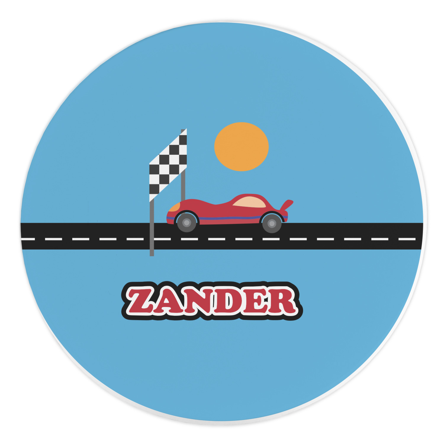 Does your little guy dream of being a race car driver? Make his eyes light up with his very own race car! Our fun red race car is on the track and heading for 1st place under the checkered banner. The car scene is set on a beautiful blue background with the bright sun looking down.