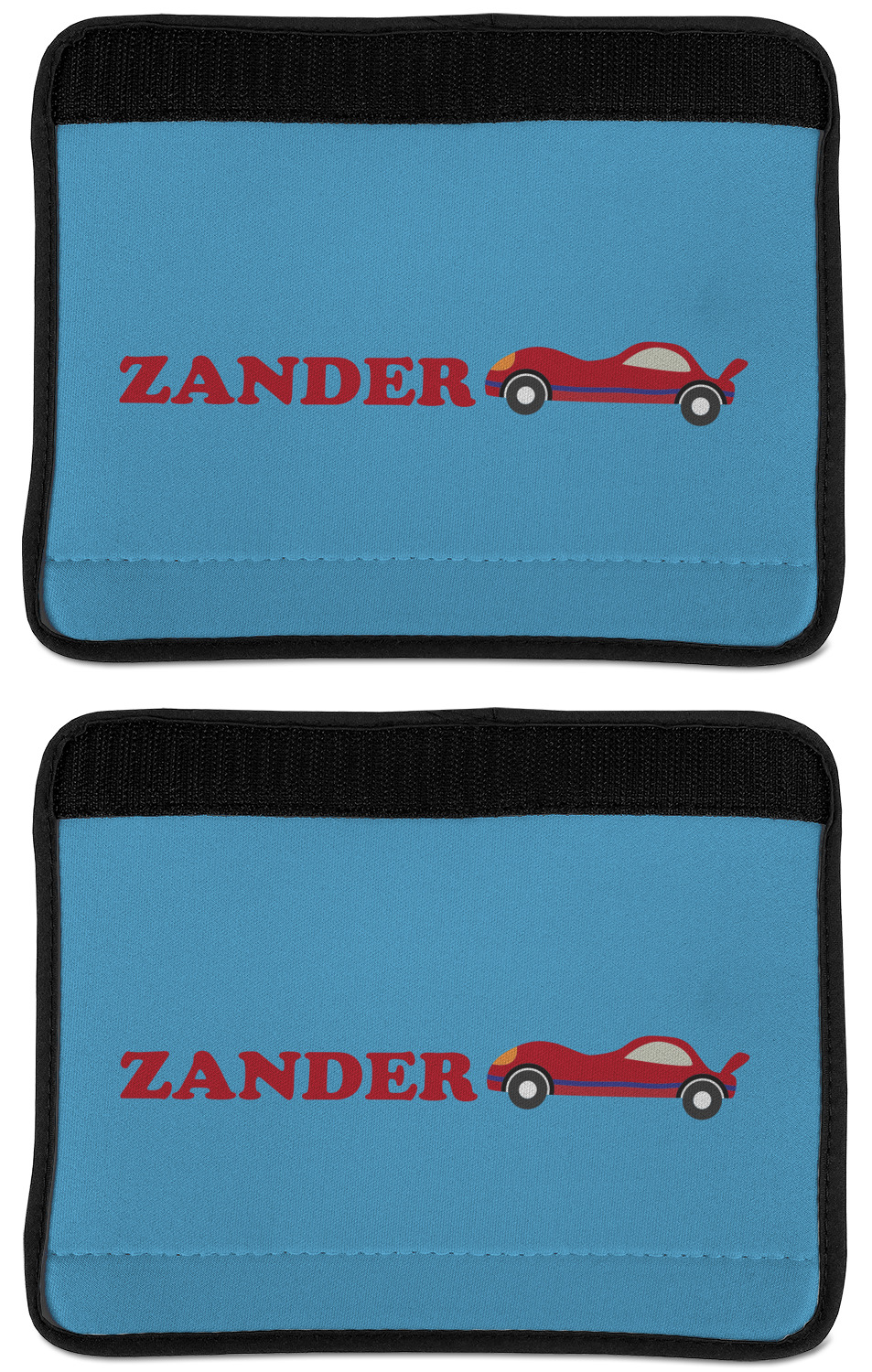 Made from neoprene, our seat belt strap covers wrap around the belt itself and have a Velcro tab for easy attachment and closure. The belt's edges are trimmed with a black polyester for a secure finish. Each cover is 9.5 by 7 inches when open and 9.5 by 2.5 inches when closed. We print your personalized design on the face of the seat belt pad.